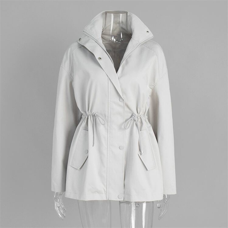 新作スタンドカラーミディ丈トレンチ 綿100%素材で肌に優しい 引き紐ウエスト調整可能 欧米風エレガント