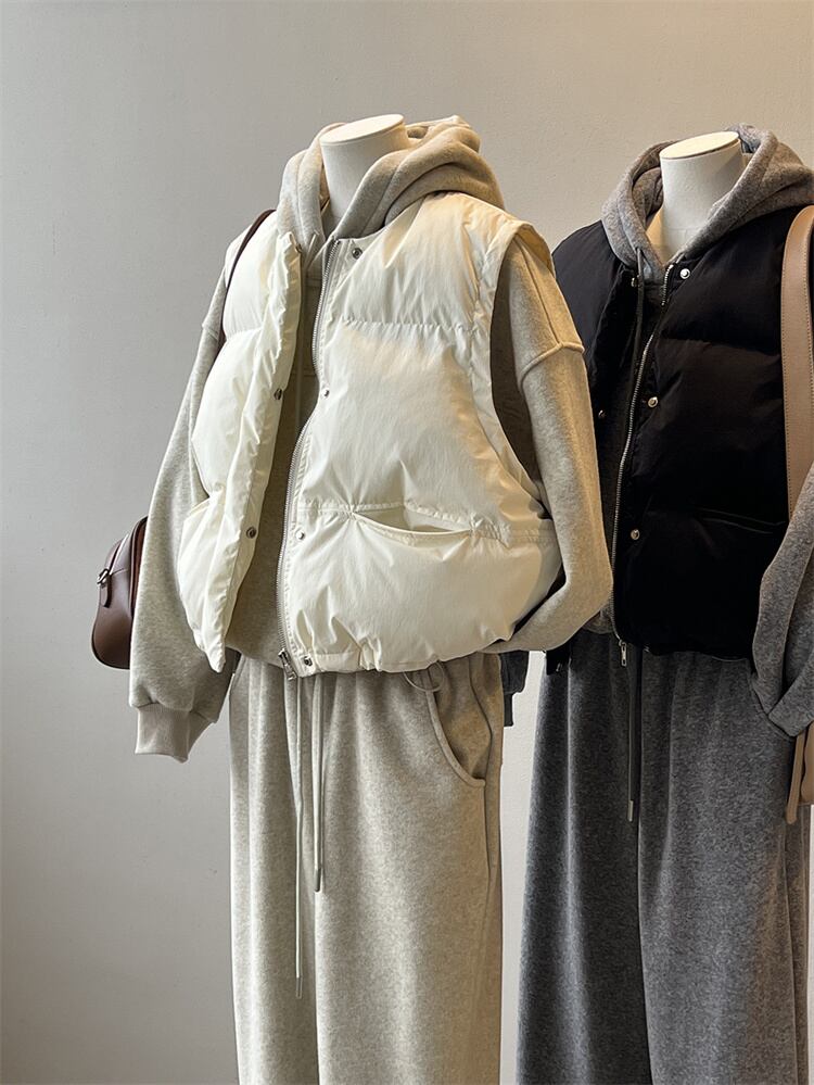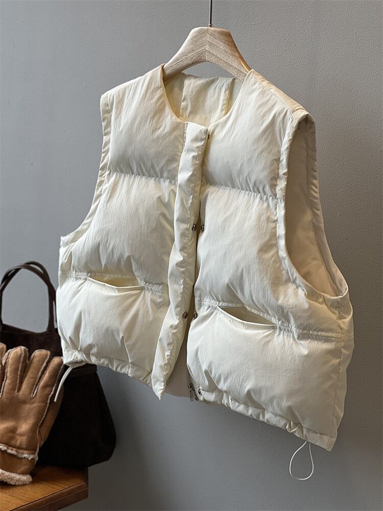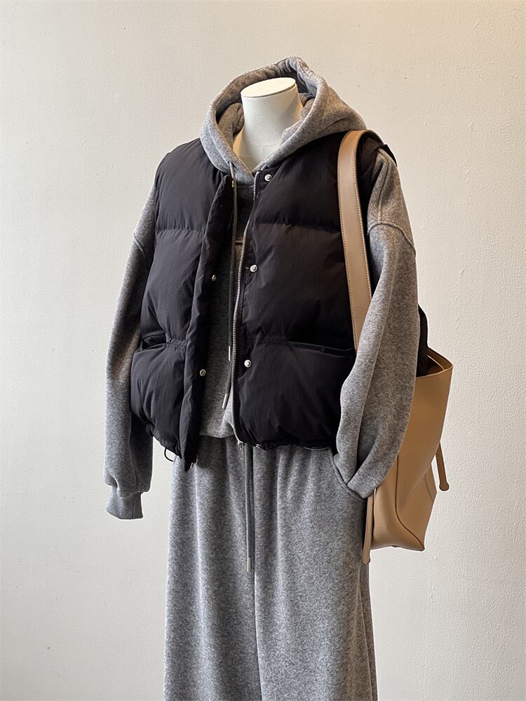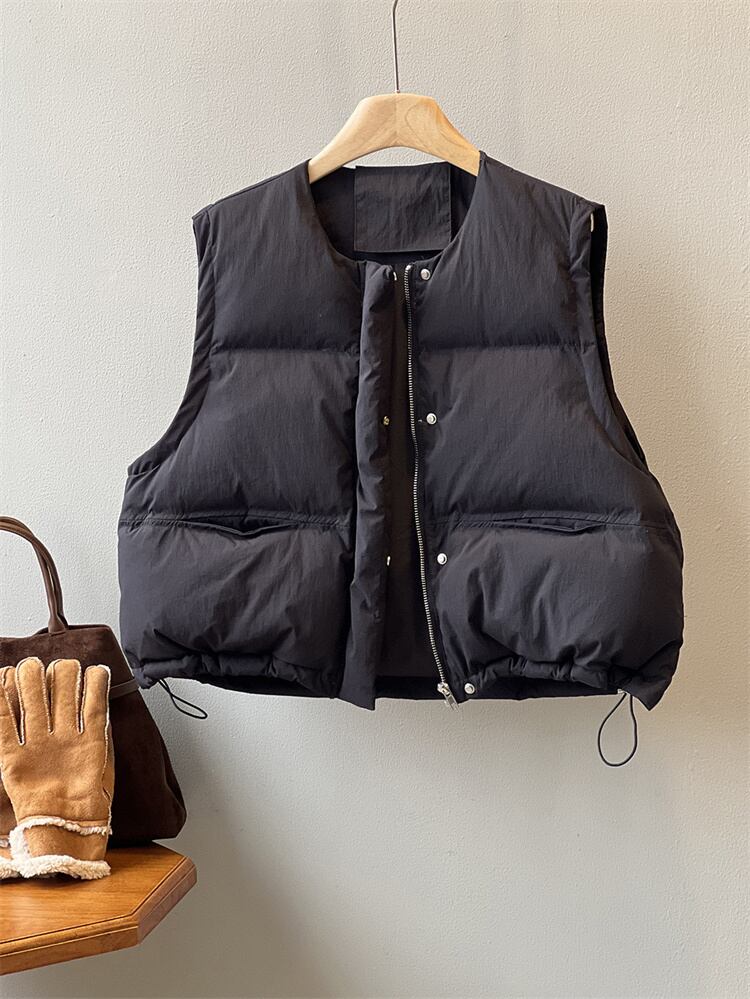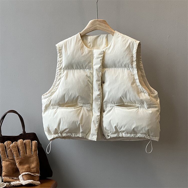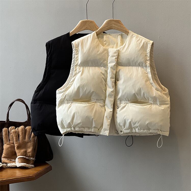 丸首短款綿ベスト ゆったりとしたシルエット 無袖で活動しやすい 秋冬のコーデに活力を与える