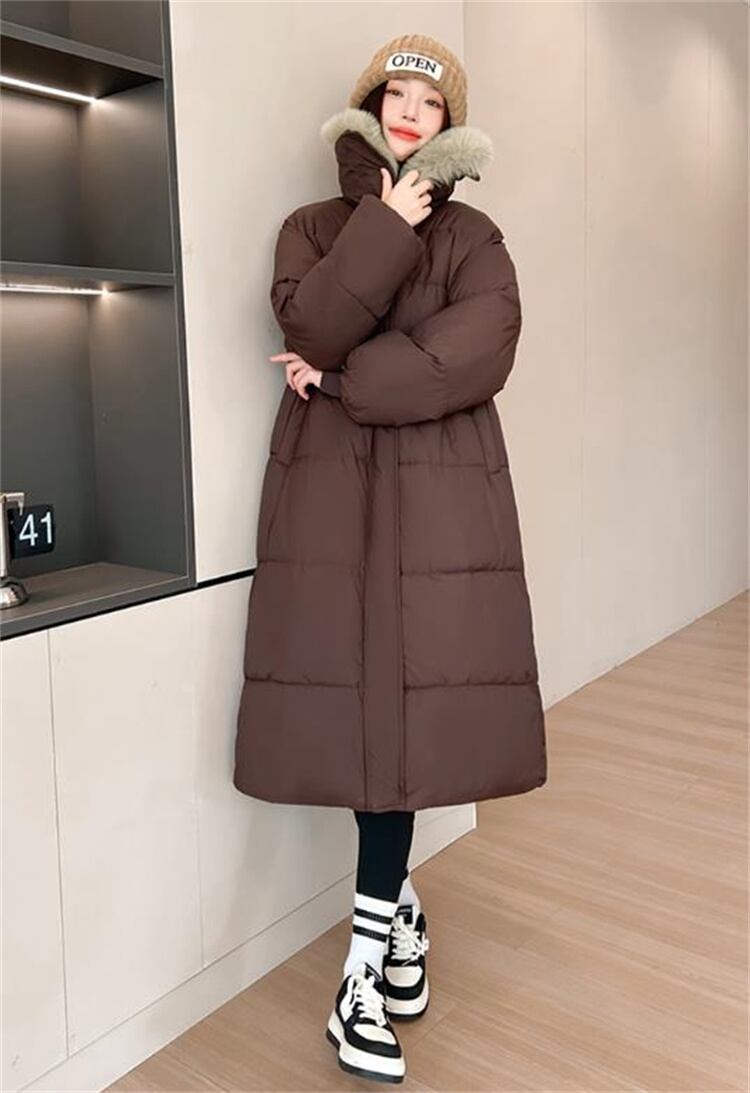 フード着脱可能 冬用防風コート 厚手で暖かい ロング丈 ゆったり着られる 軽さ追求