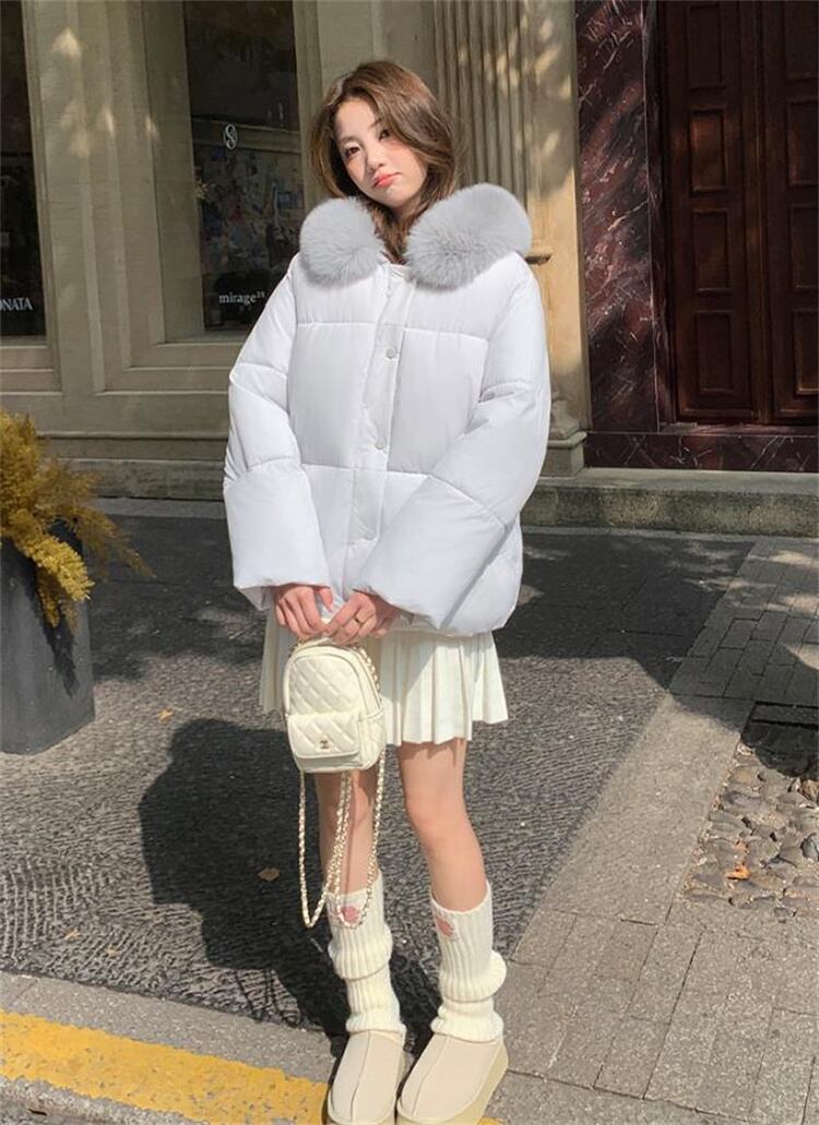 フード付き たっぷり毛足 ショートダウン 2025冬 ゆったり厚手防寒着