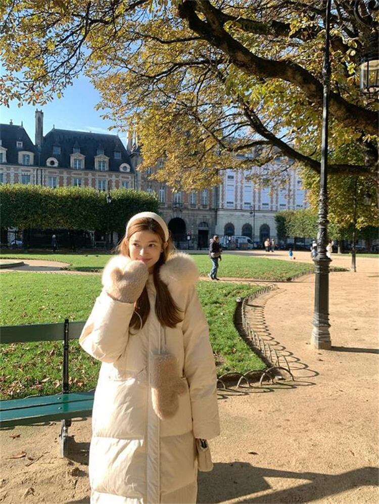 冬のおしゃれ ファーネック 柔らかなライン 長袖 厚手外套