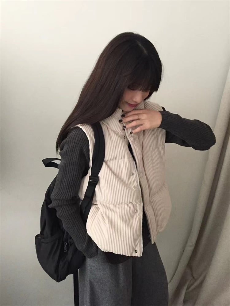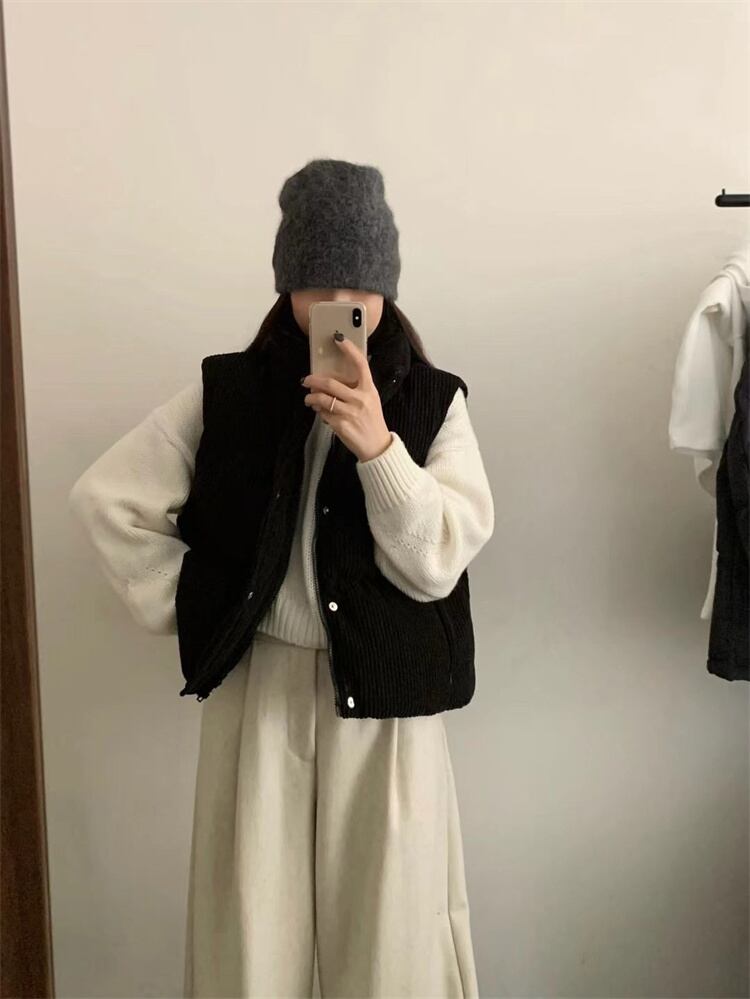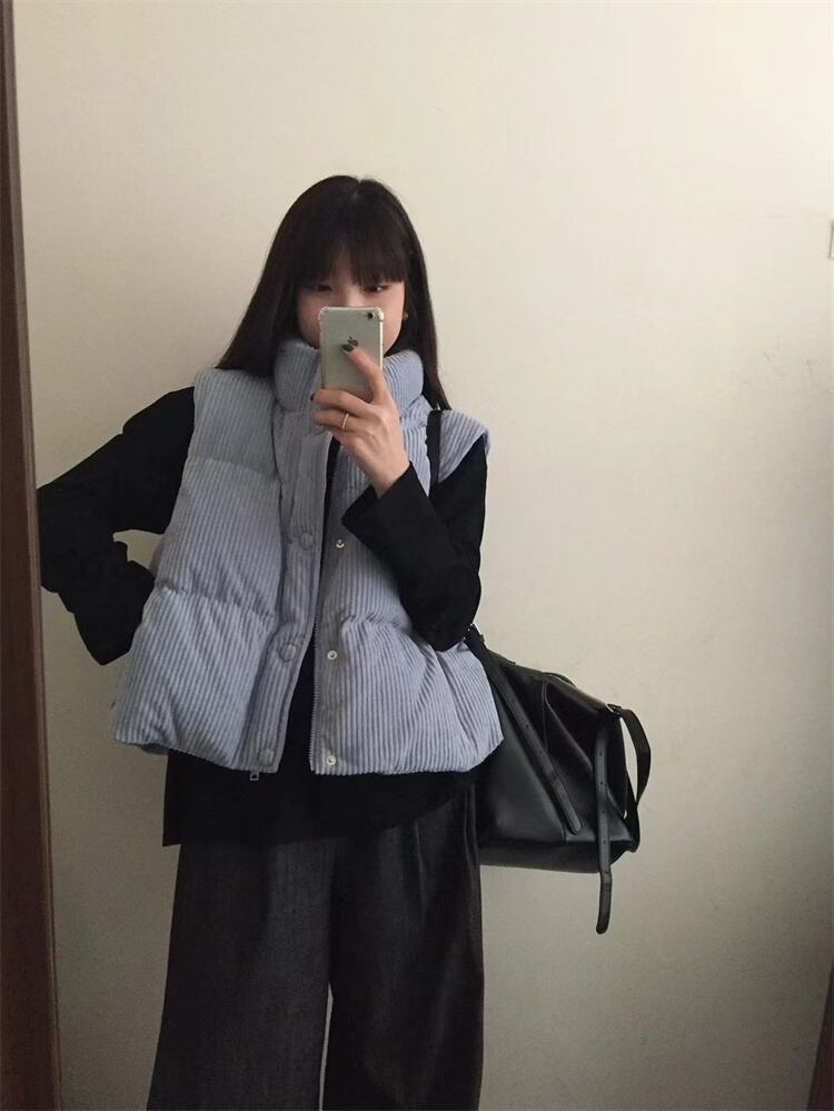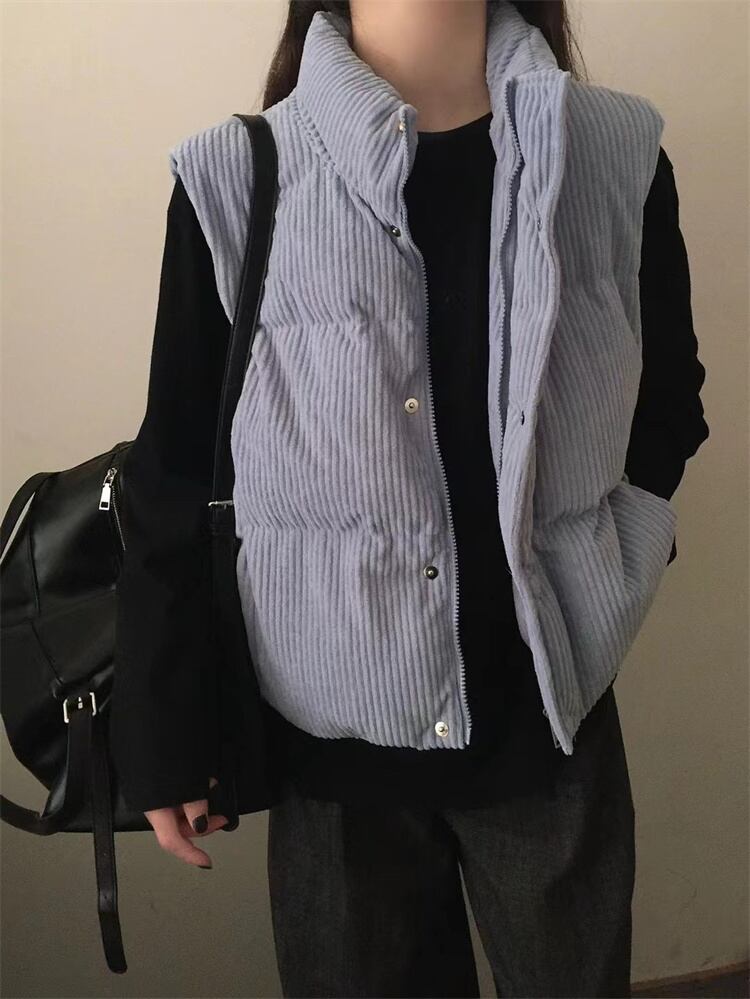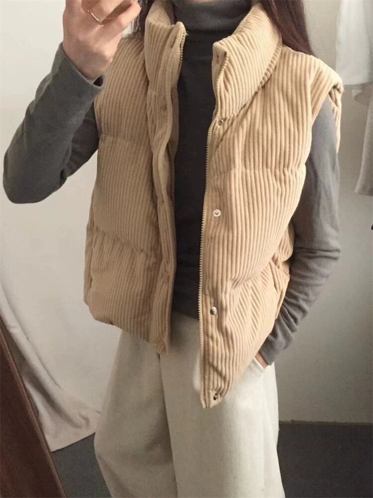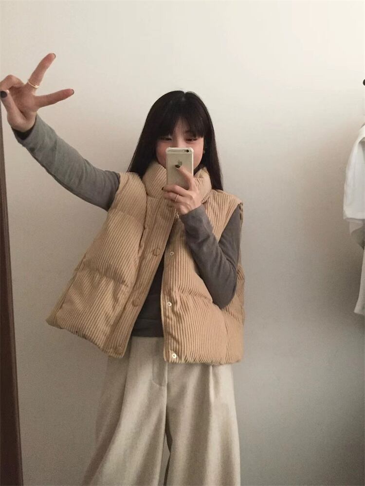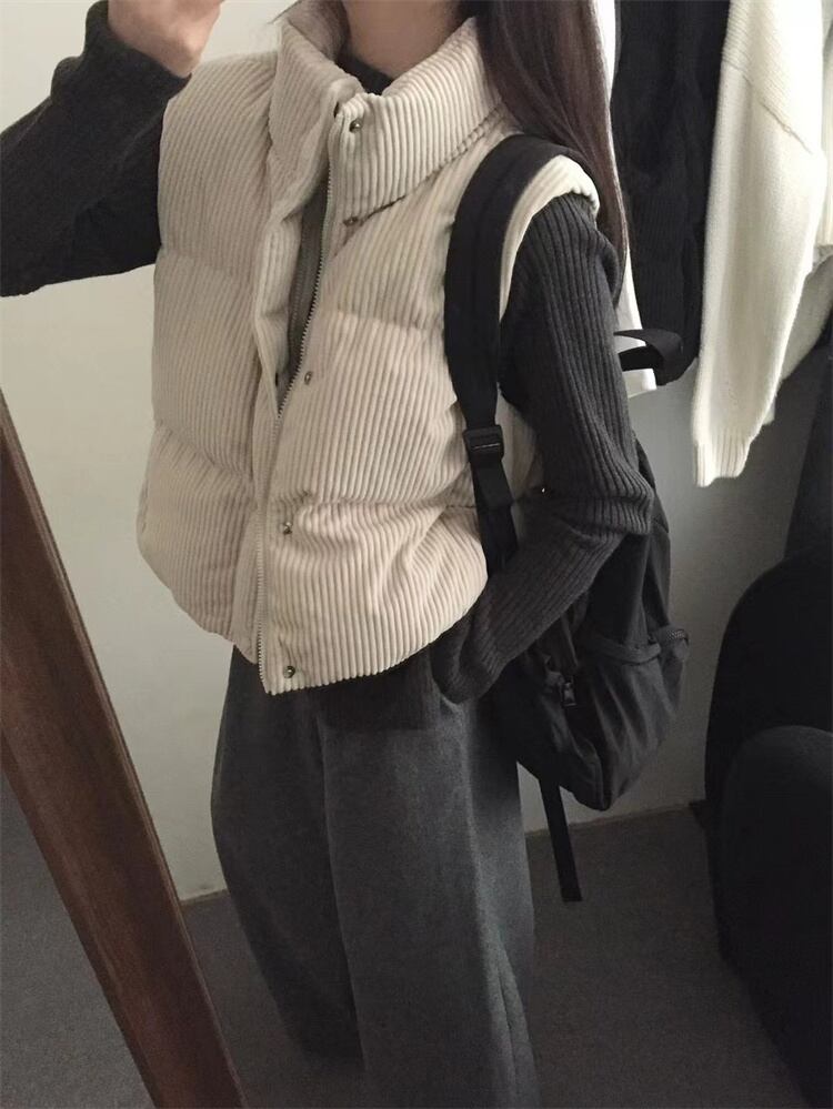 冬季着用 コーデュロイ ダウンベスト 立ち襟 短款 厚手 暖を保つ