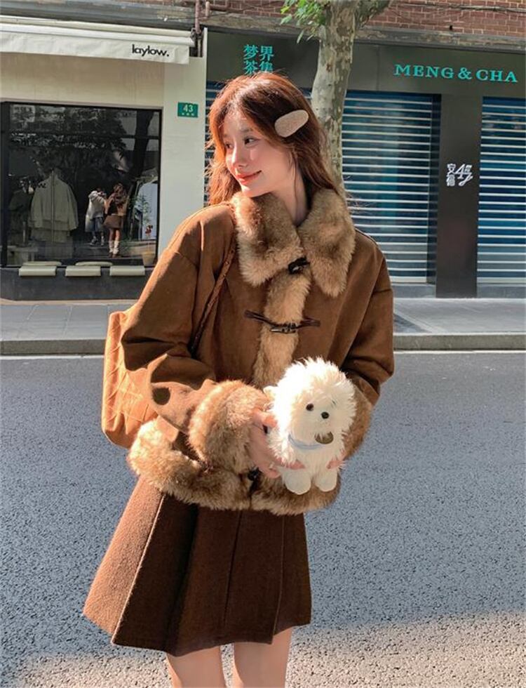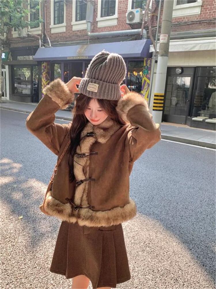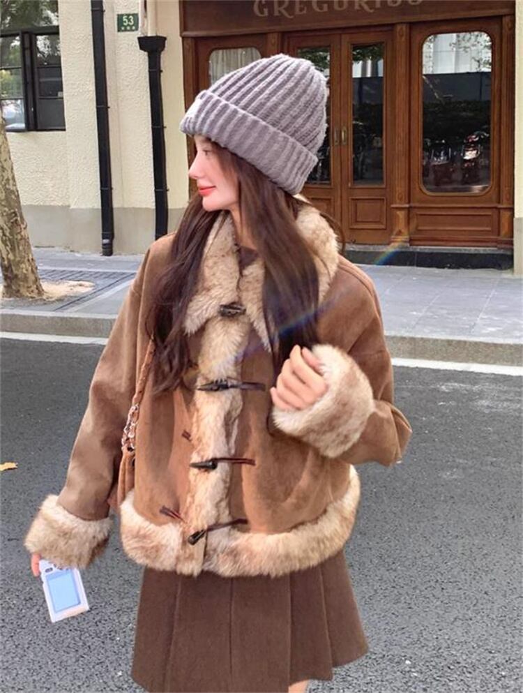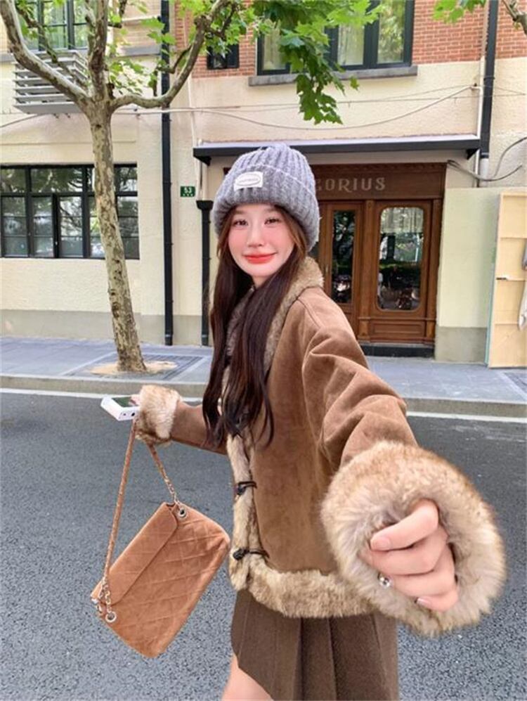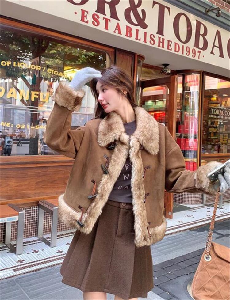 2025秋冬 スエードベストコート ルーズライン 厚地素材 ホーンボタン 冬越し