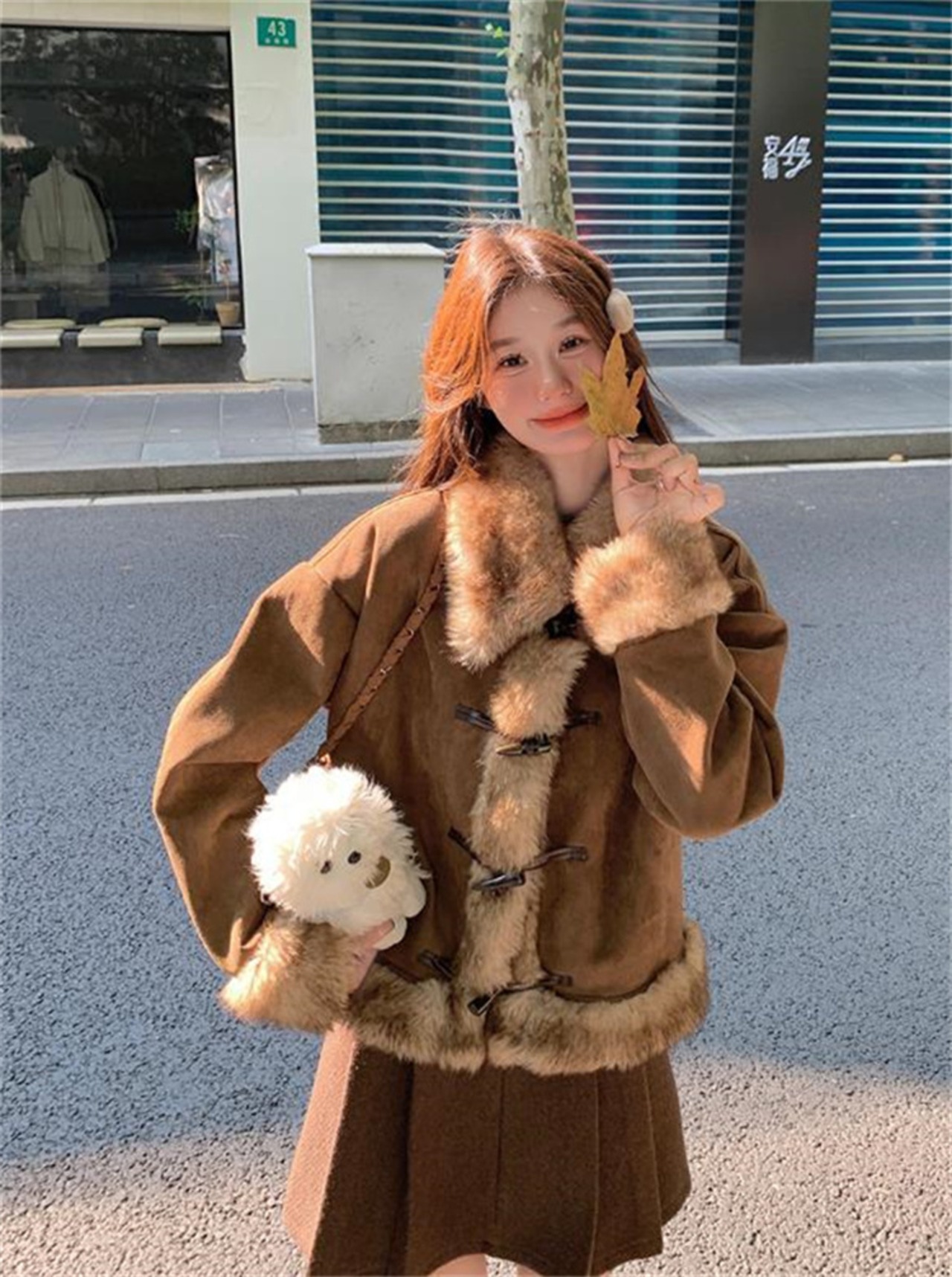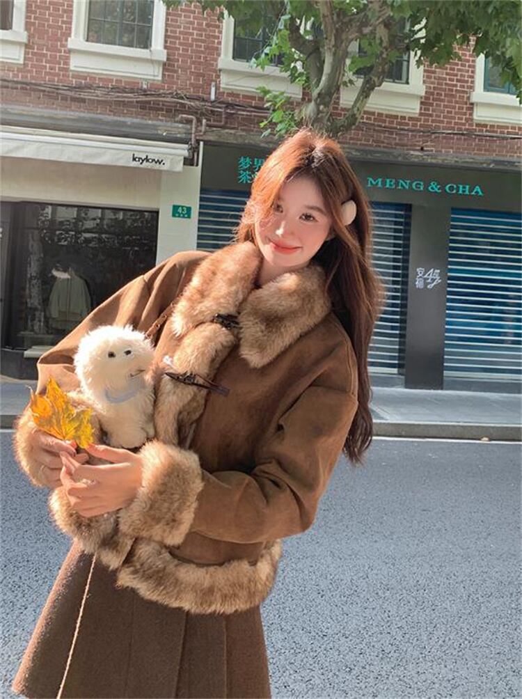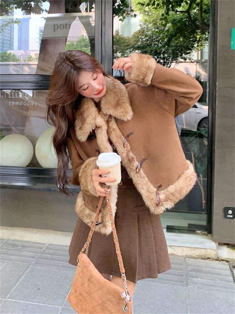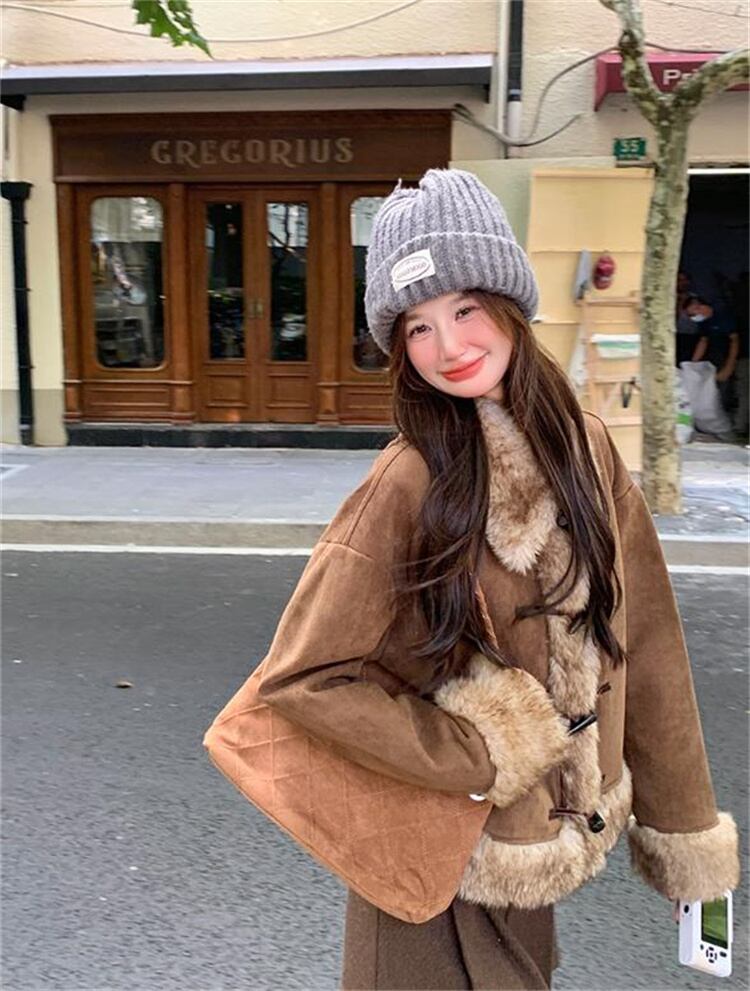 2025秋冬 スエードベストコート ルーズライン 厚地素材 ホーンボタン 冬越し