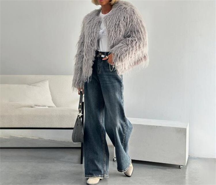 フェイクファー あったかショートジャケット ゆったりデザイン