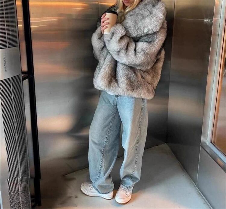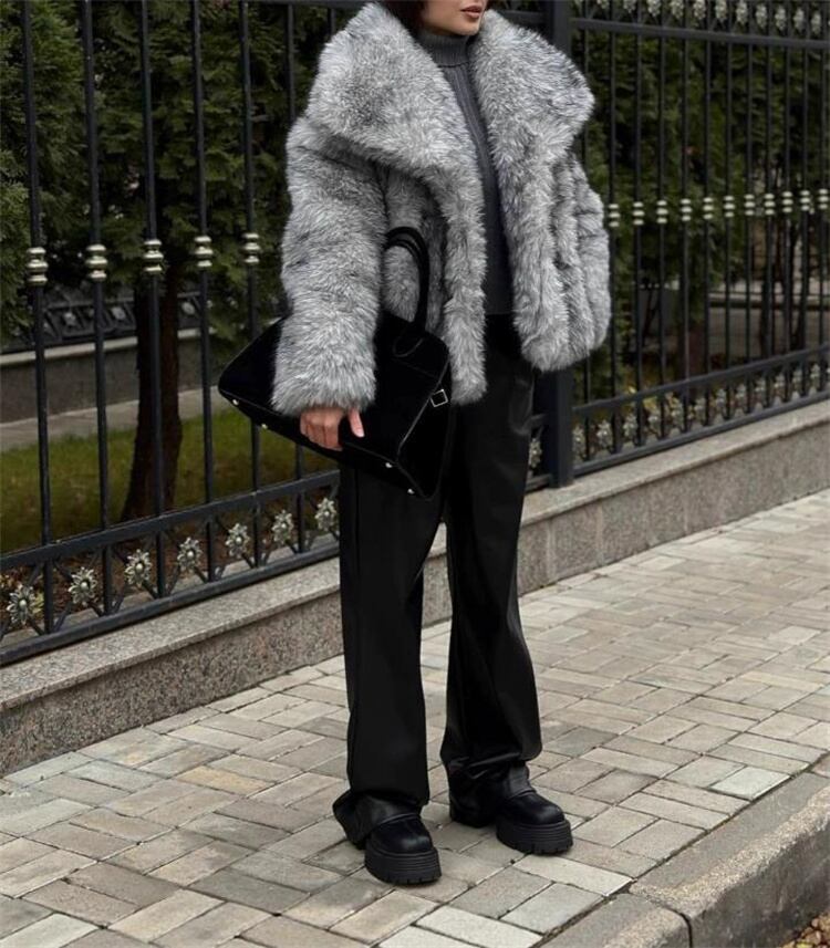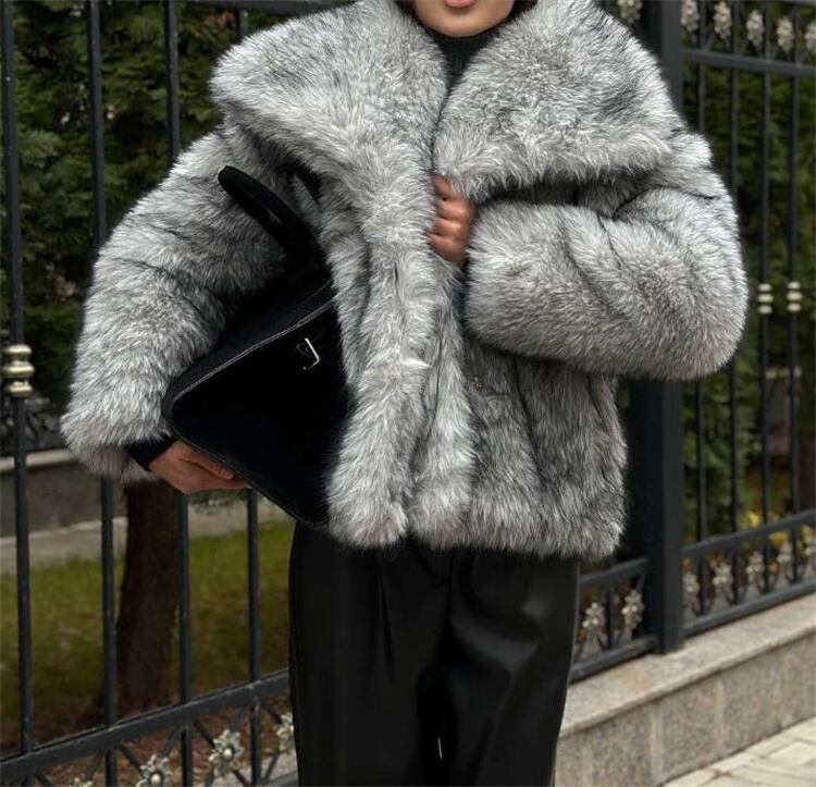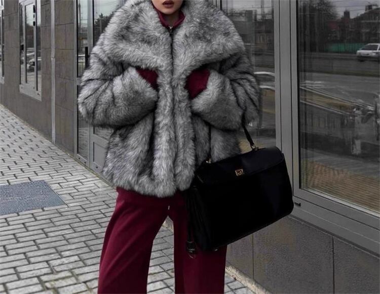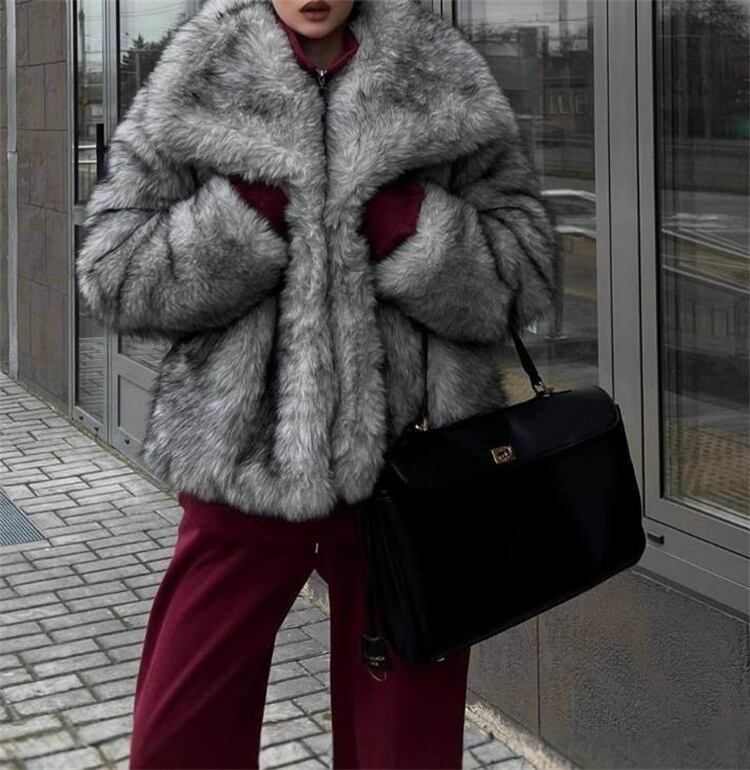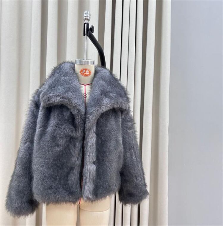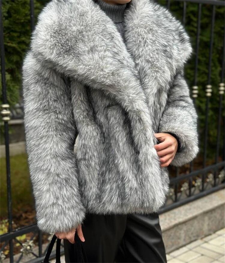 欧米風デザイン ショートフェイクファーコート リラックス感