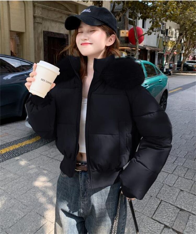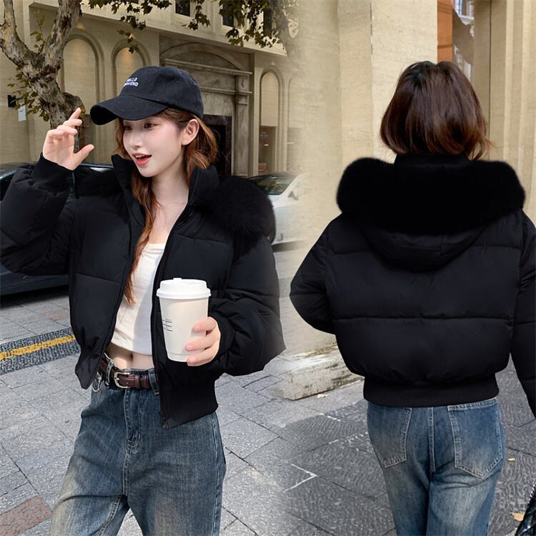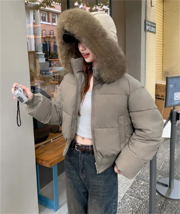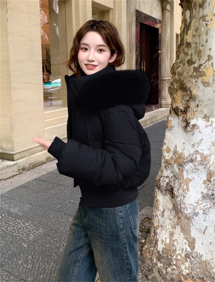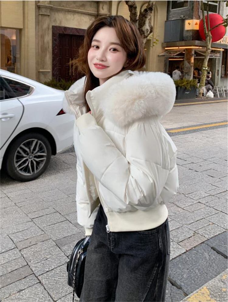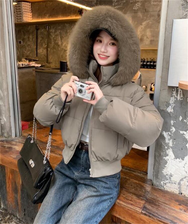 辣妹風 冬用 大毛襟 ダウン感 短款 厚手 パフコート 2025