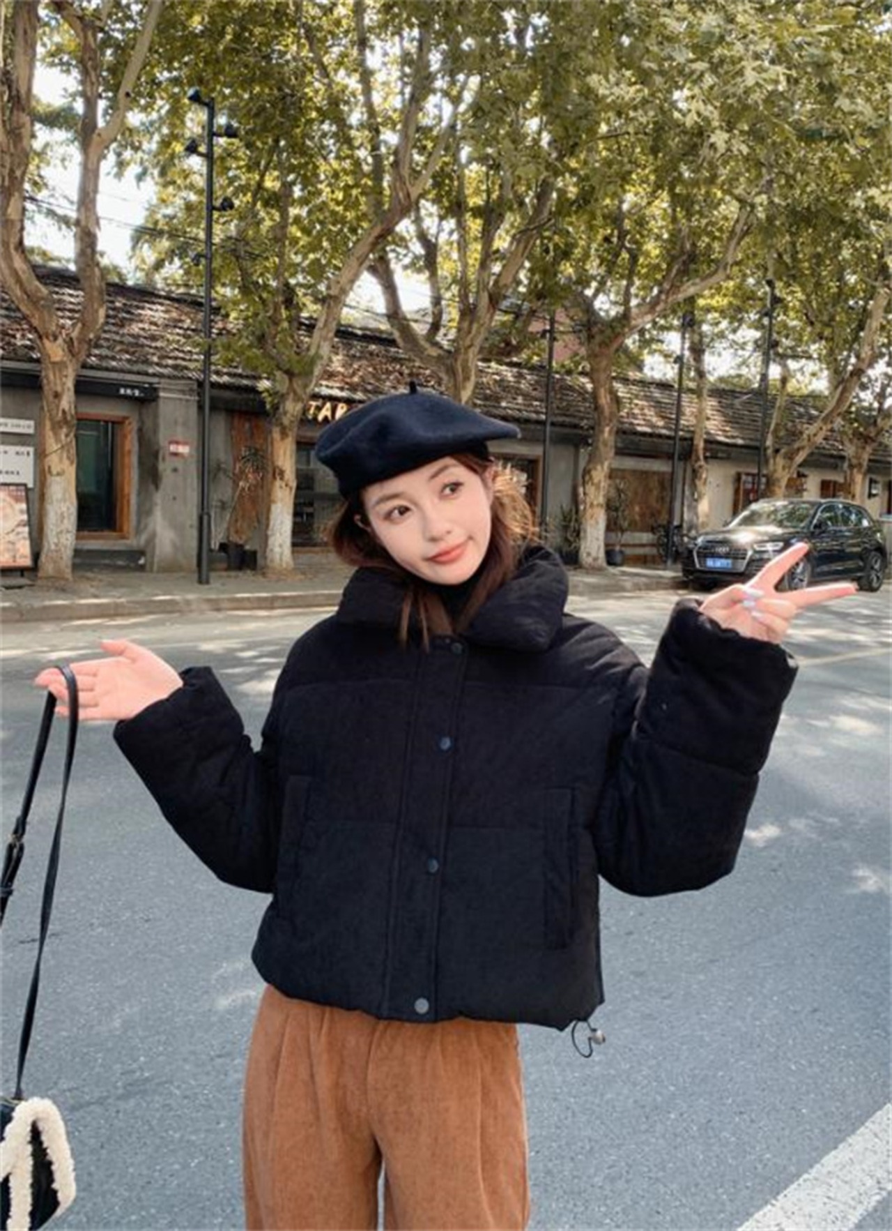 冬定番 ワイドカラー コーデュロイ素材 ゆったり丈 防寒 短款アウター