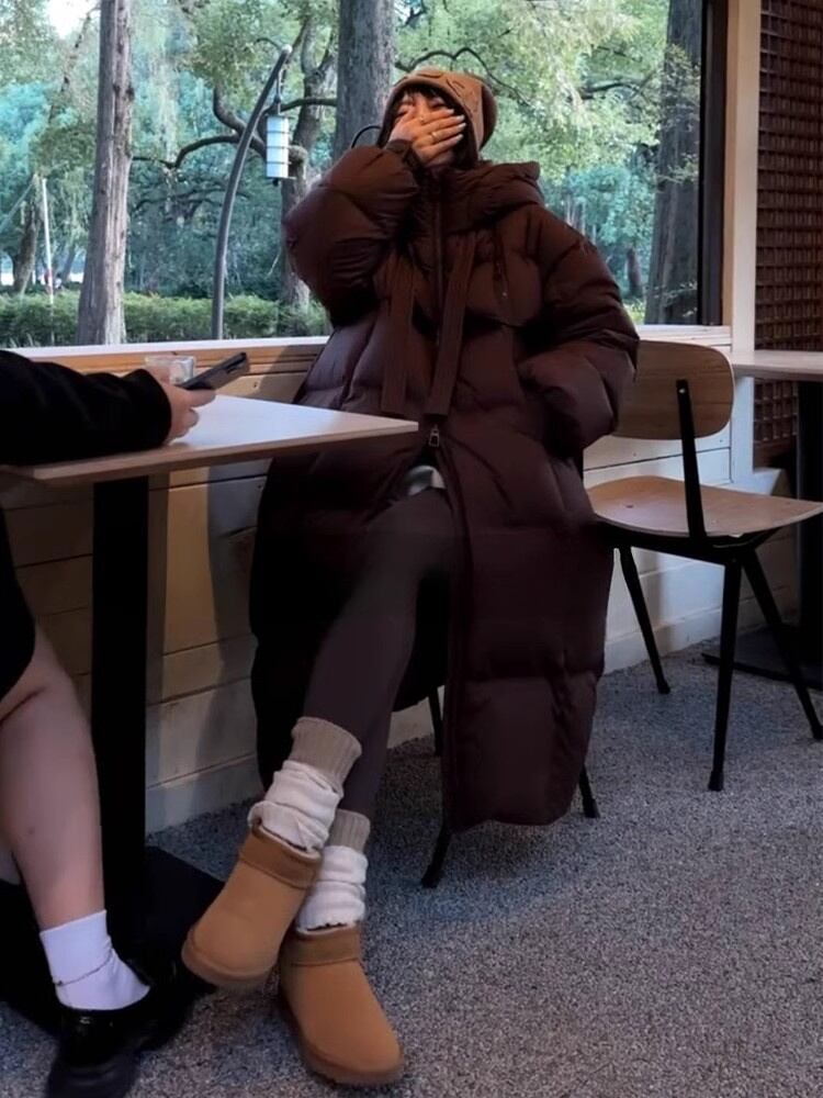2025冬 ロングダウンコート 厚手フード付き ゆとりある着心地