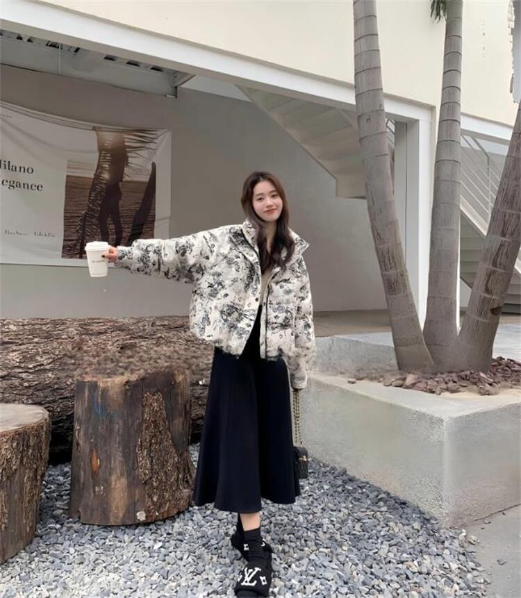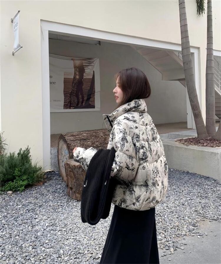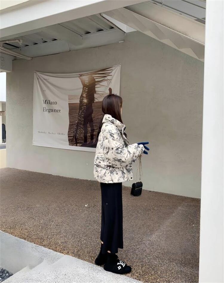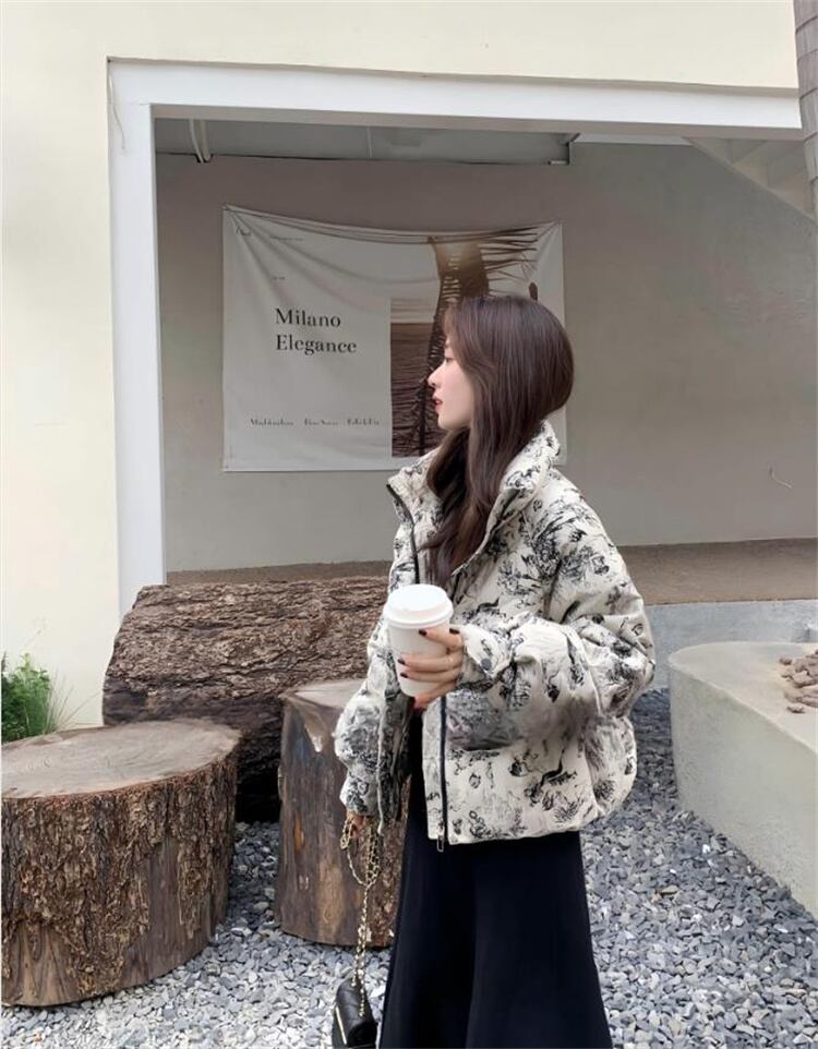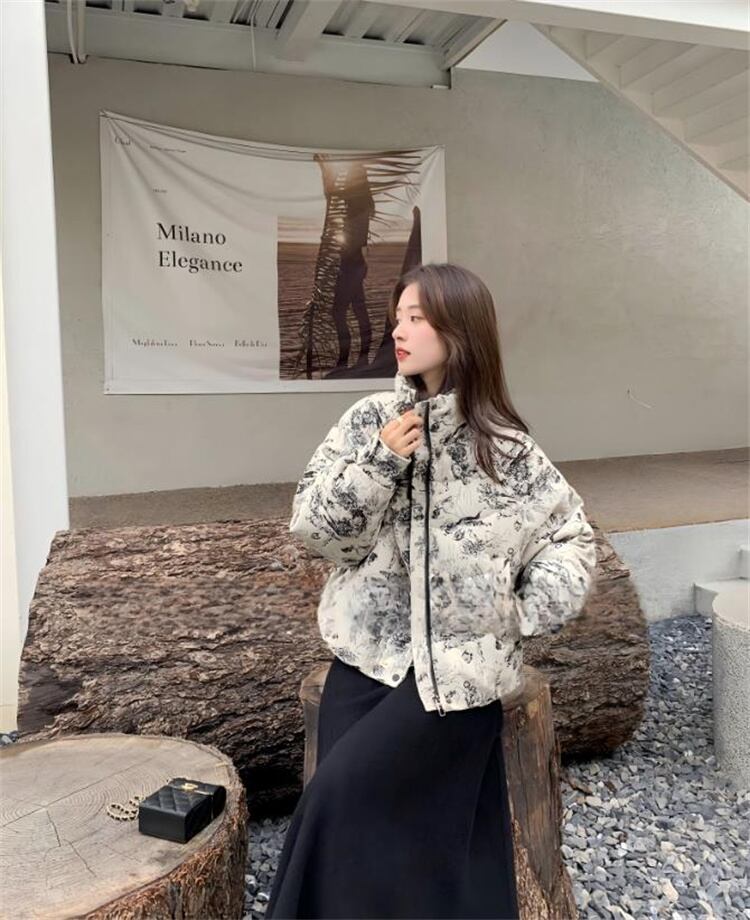ダウンコットン 短外套 2025冬 ルーズフィット 通勤向け 柄生地 厚手 暖房効果