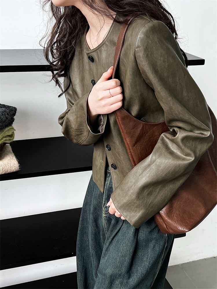 ソフトな手触りの秋ジャケット レトロモダンなPUレザー