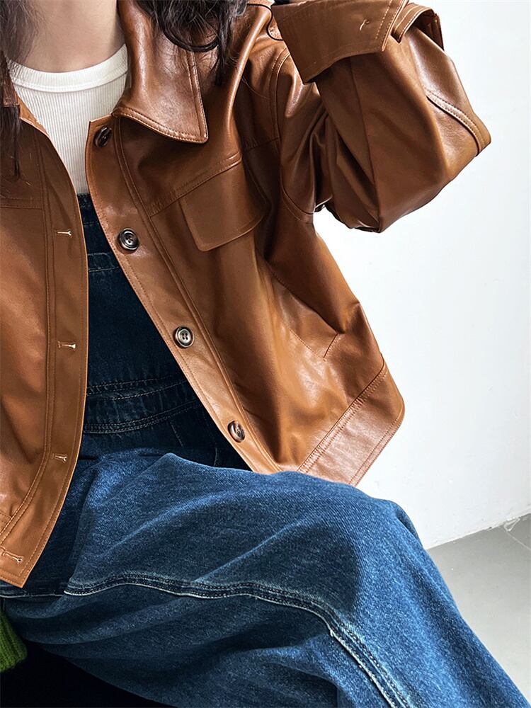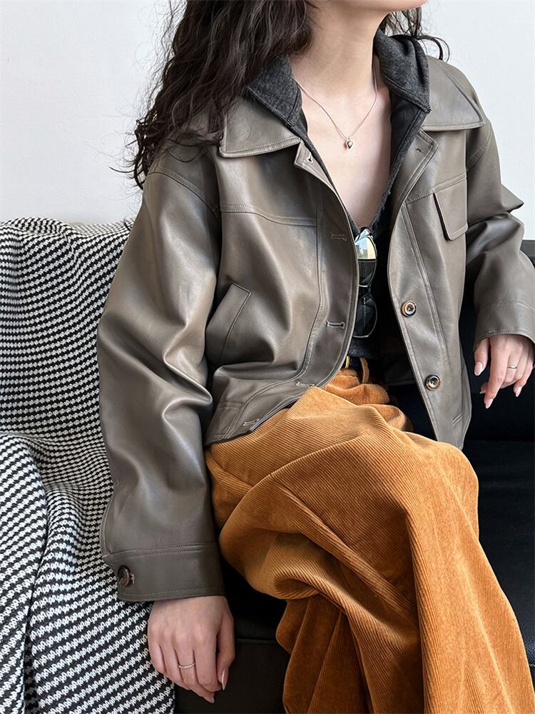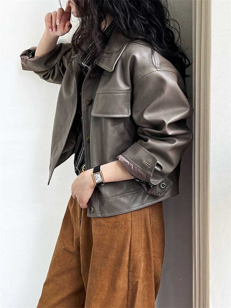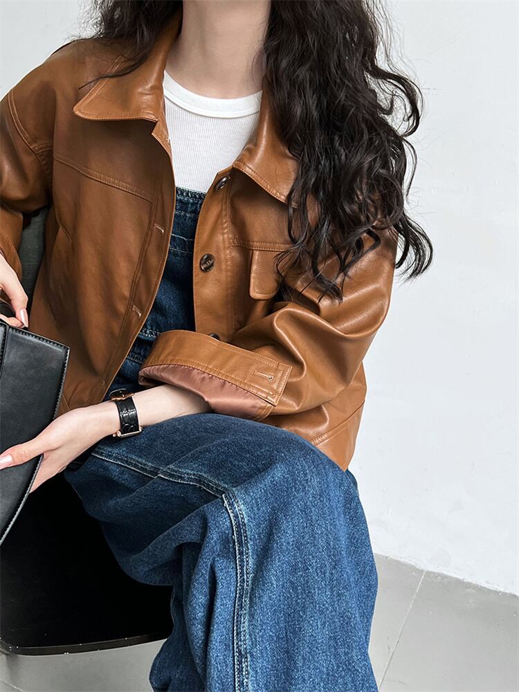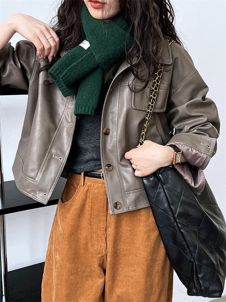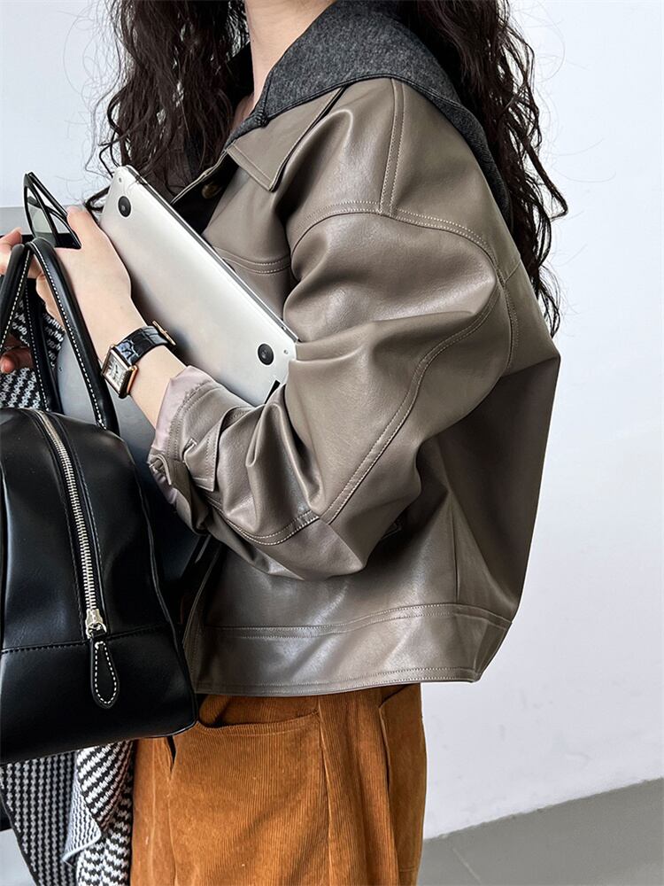 秋装用 モータースタイル カラー付き ショートレザーアウター 2025新作