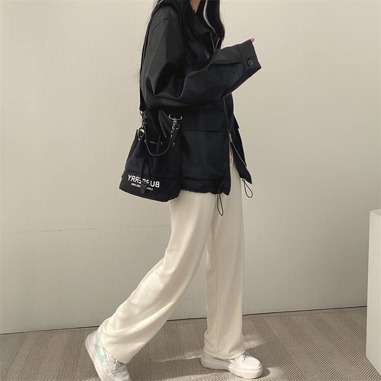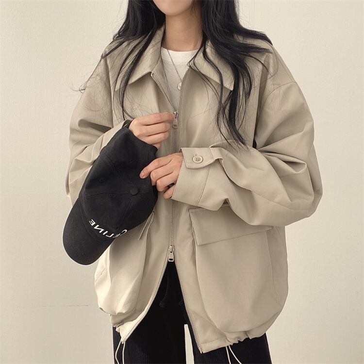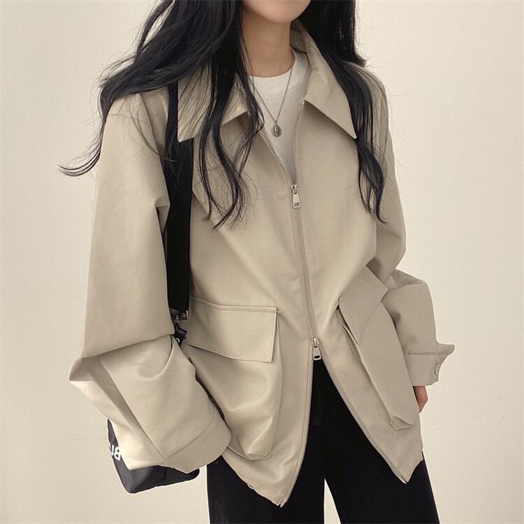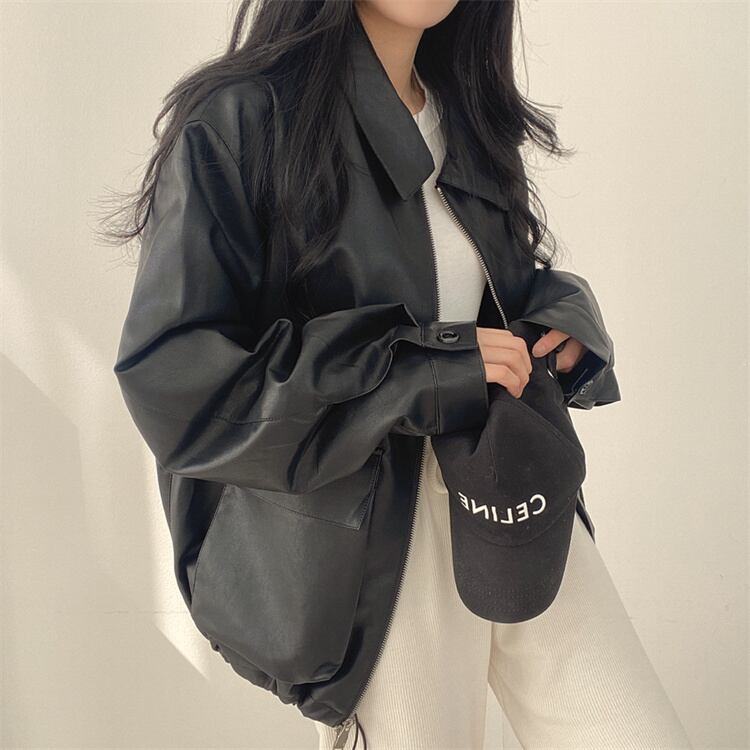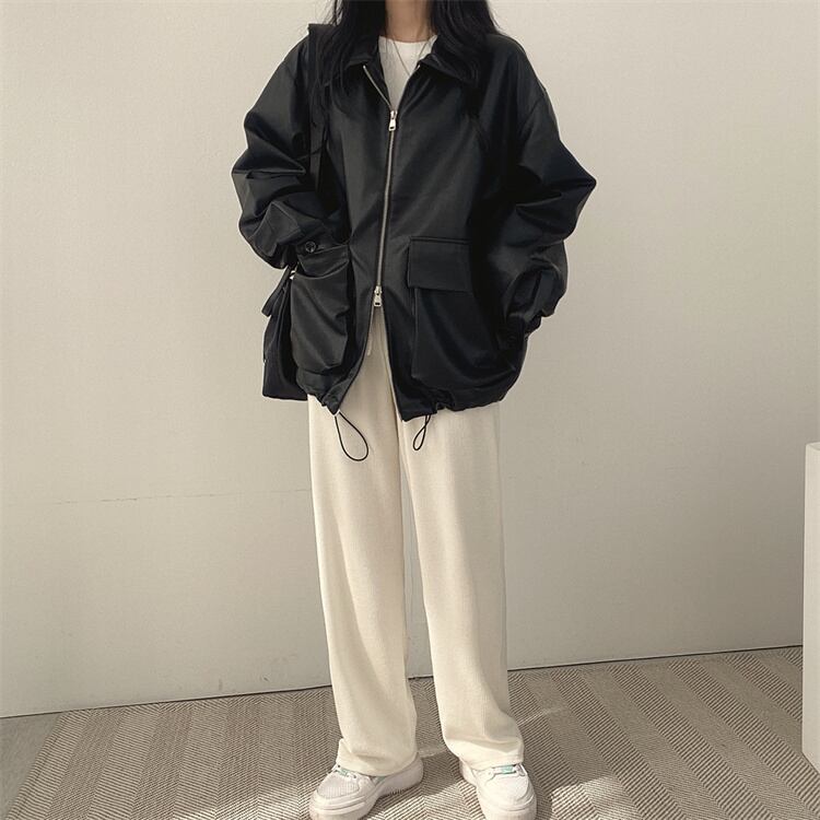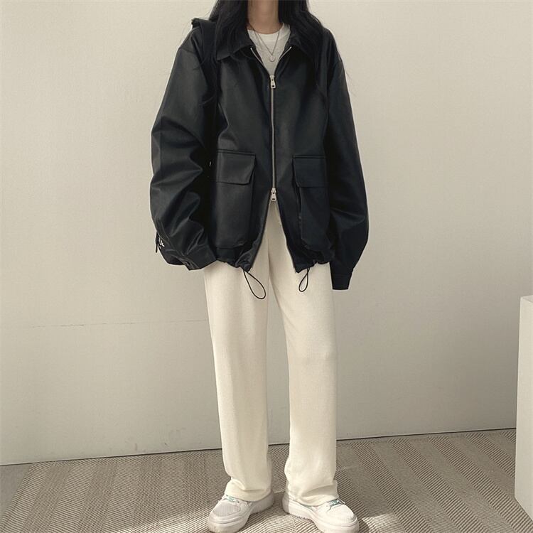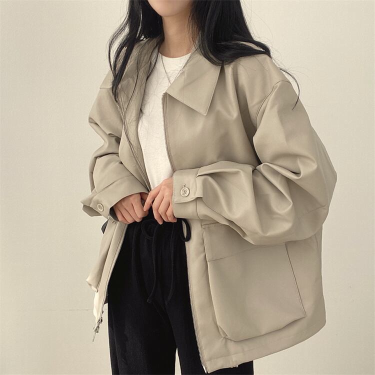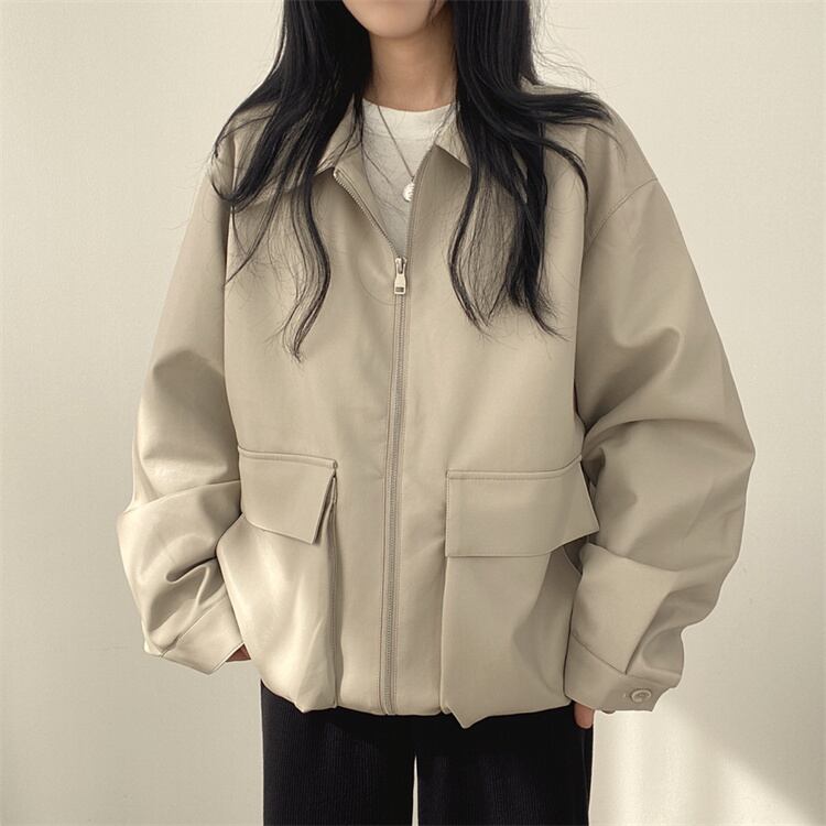 レトロスタイル カジュアル リバーシブル襟 ファスナー レザージャケット ルーズフィット