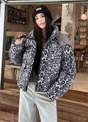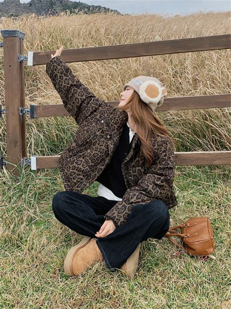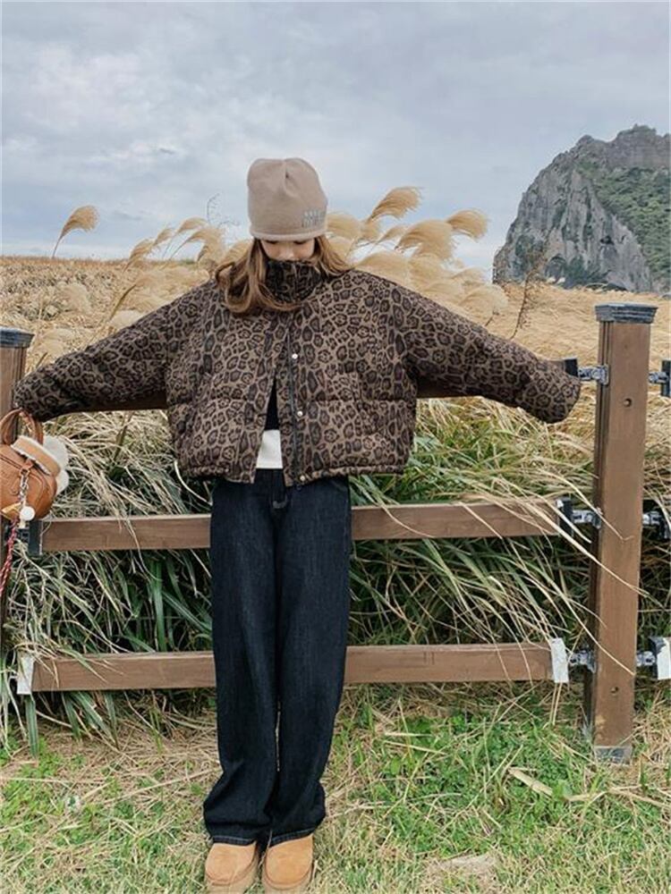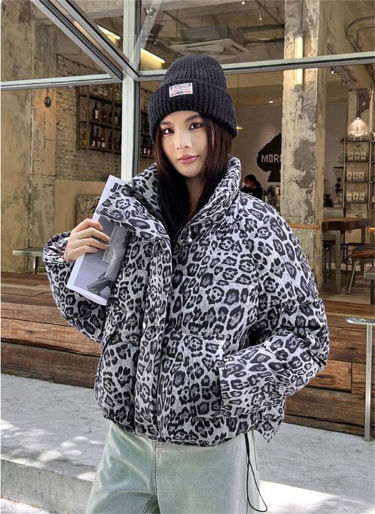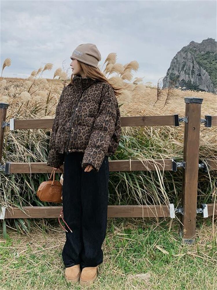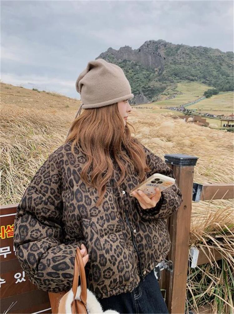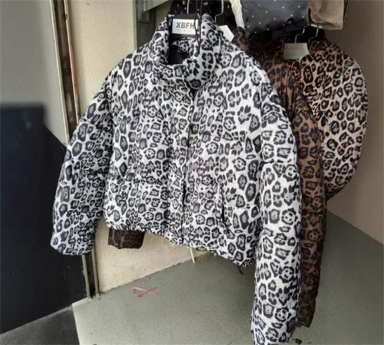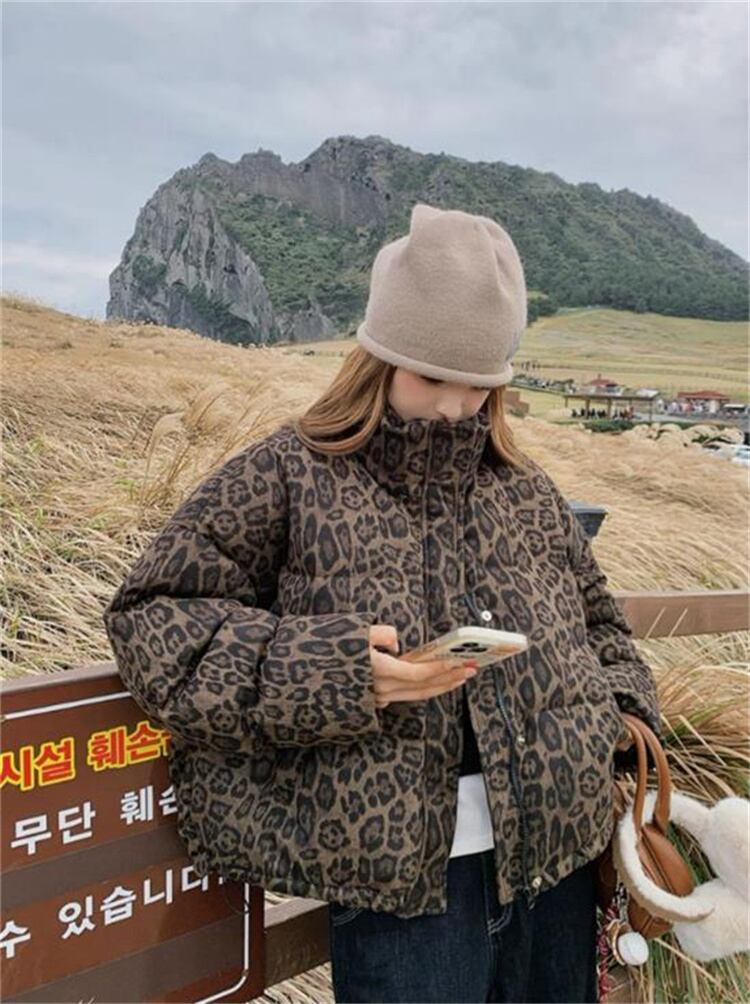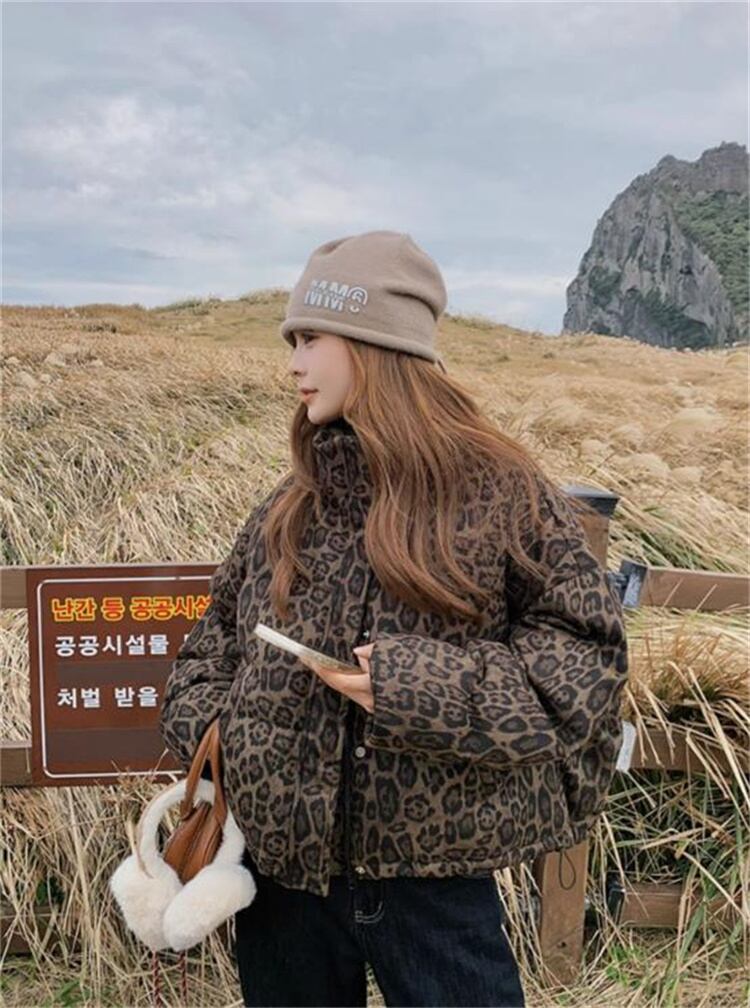 2025新作 冬季 ヒョウ柄 ショート ダウンジャケット ビンテージ風 スタンドカラー