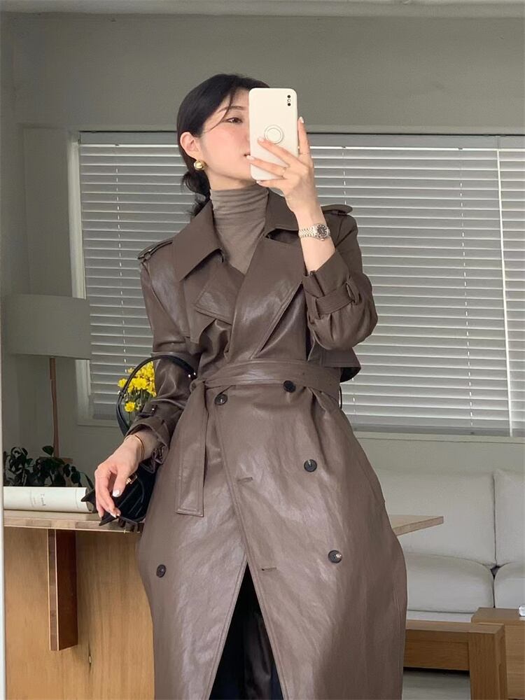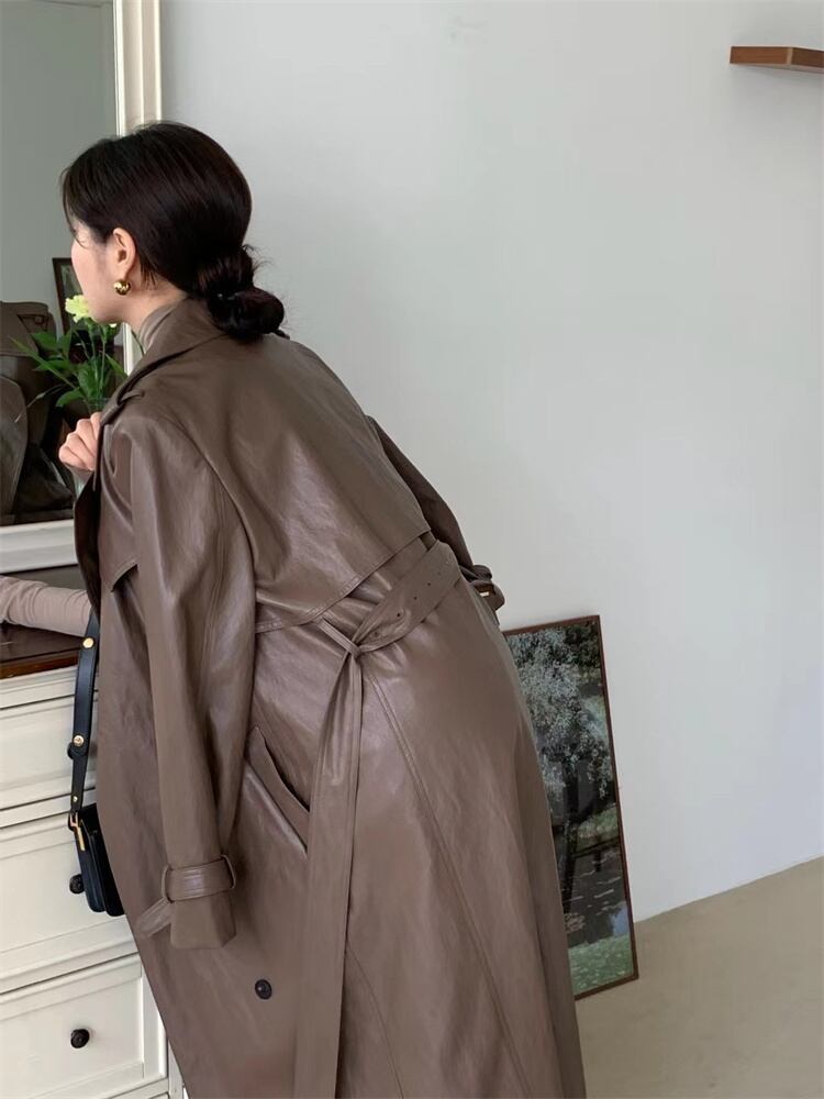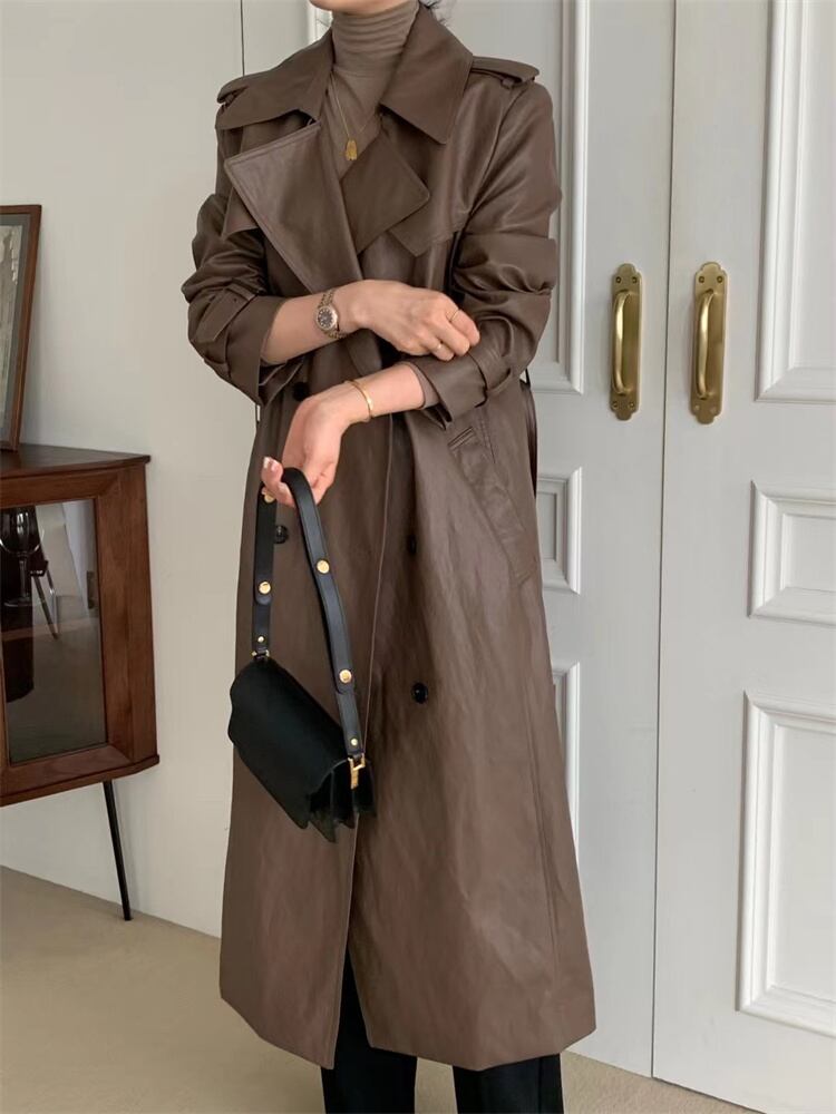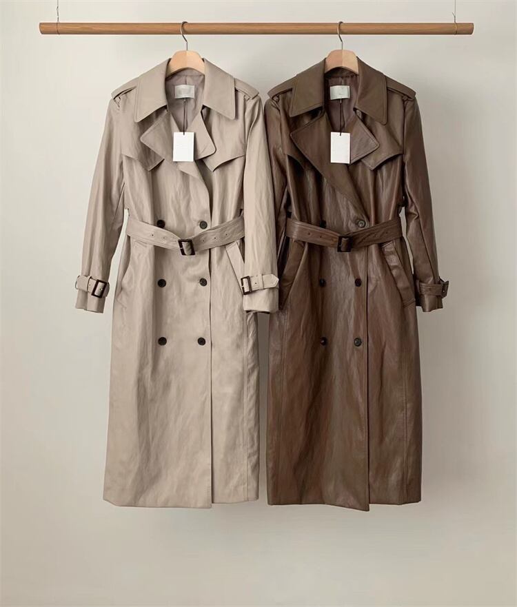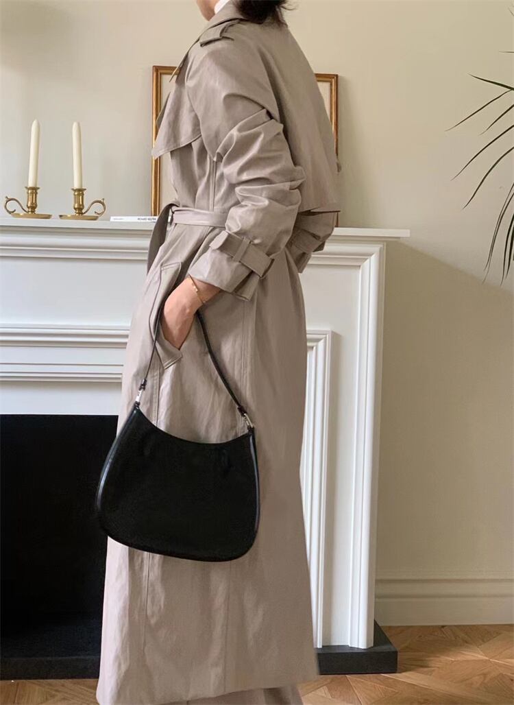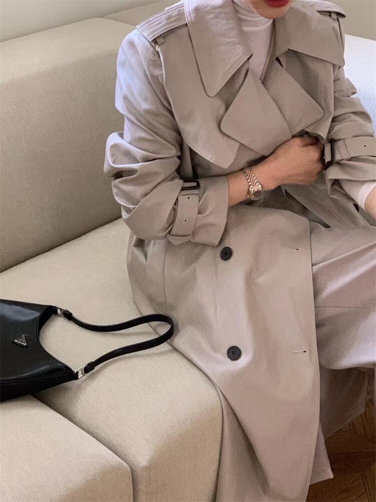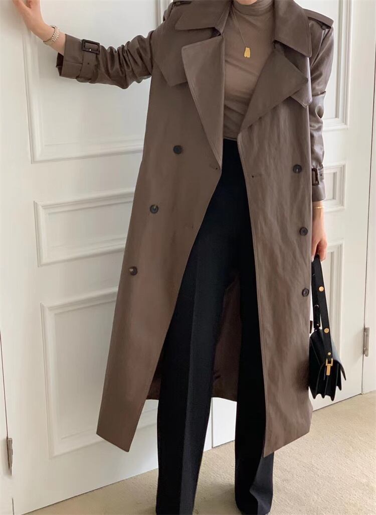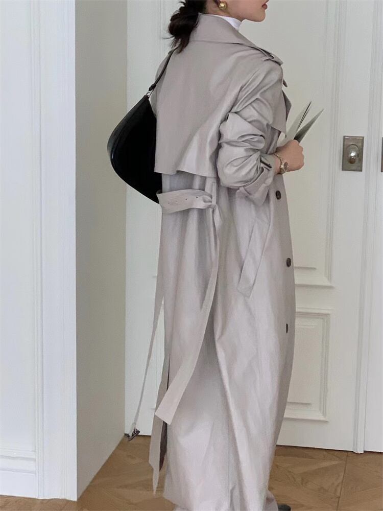 クラシックなデザイン ダブルボタンコート ウエストベルトでフィット感調整 ロング丈
