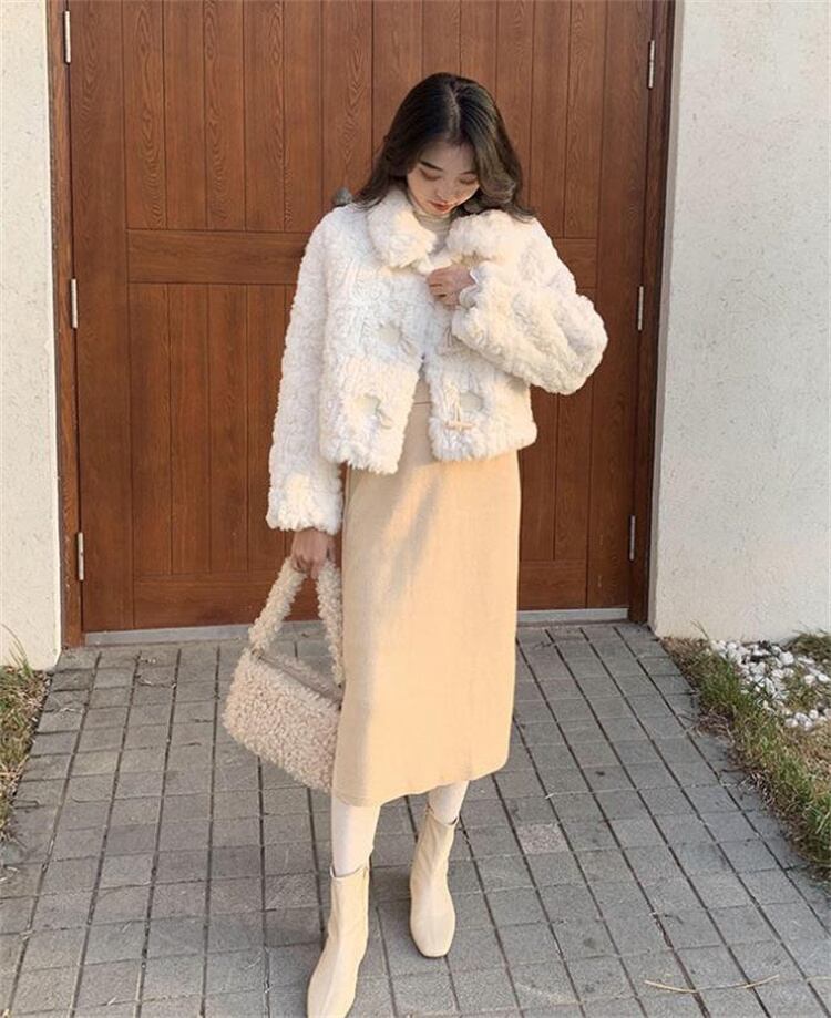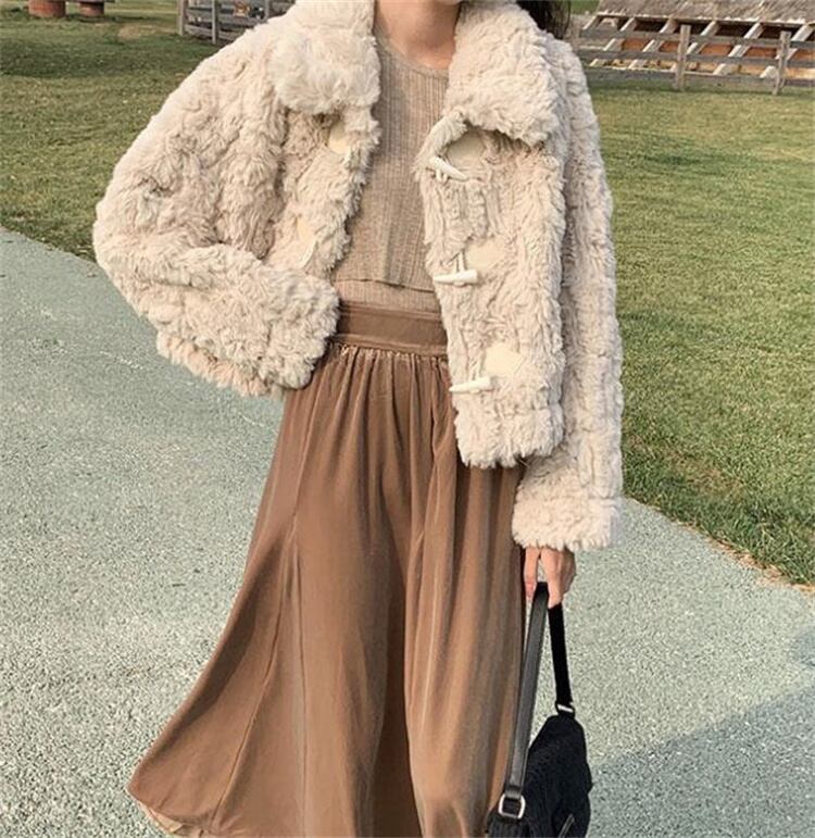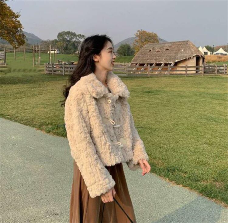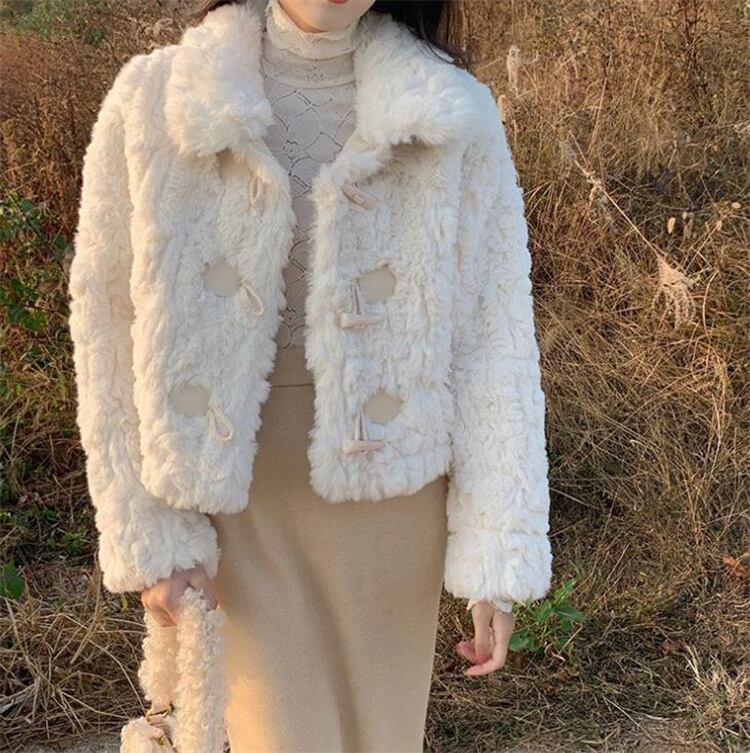 ダッフルコート 毛皮一体 短いスタイル コート ジェントルスタイル ゆったりする パイル ファー毛皮