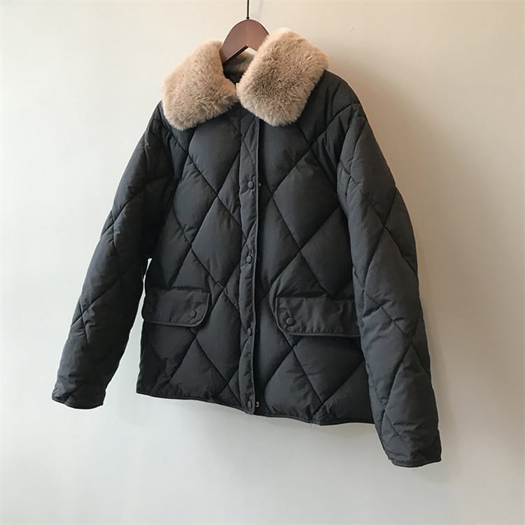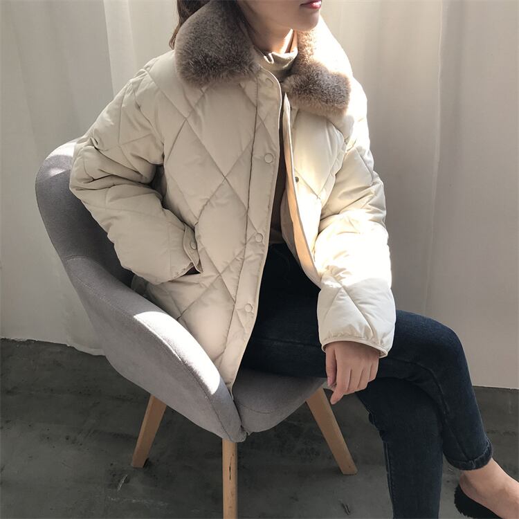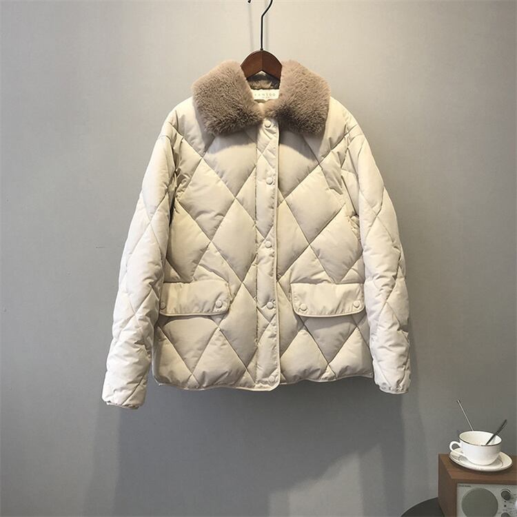 新作 イミテーションラビットファー あったか ひし形 中綿ジャケット コート