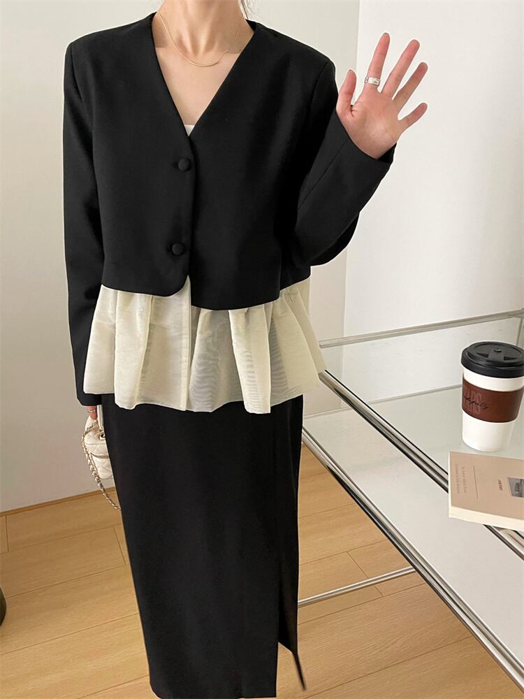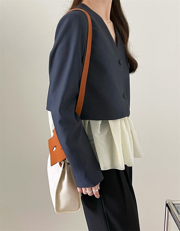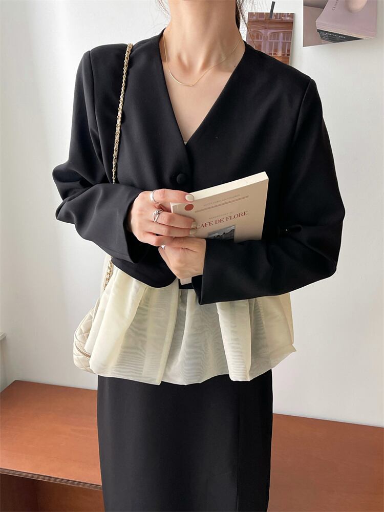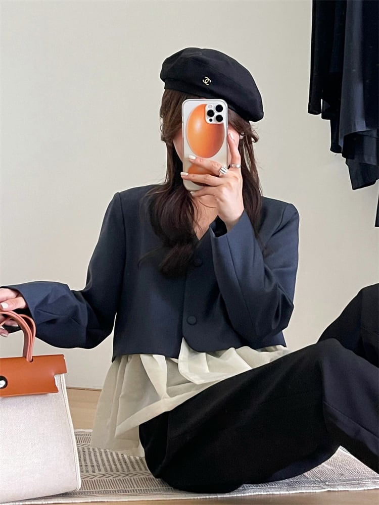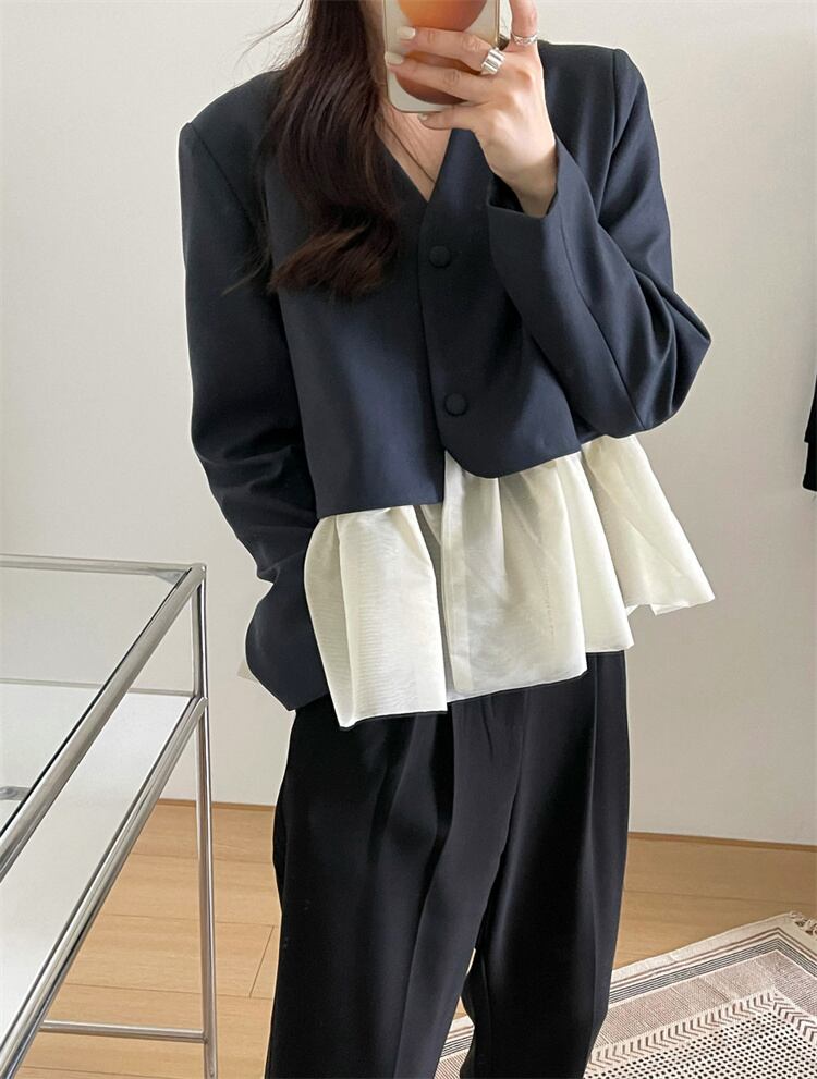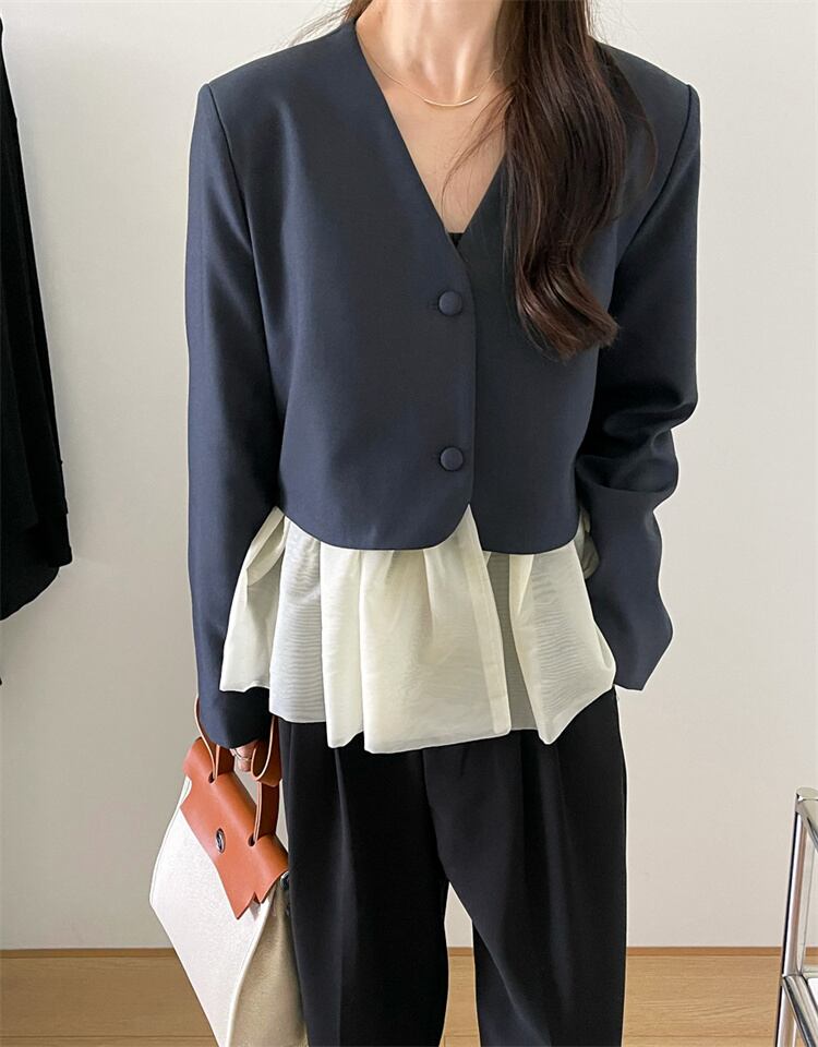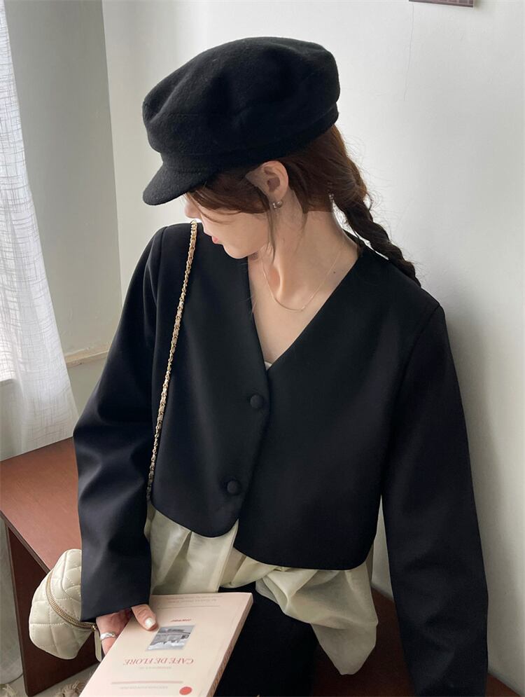 初秋 短いスタイル エレガント シンプル 気質 コート 2つボタン 受け取って腰 縫付