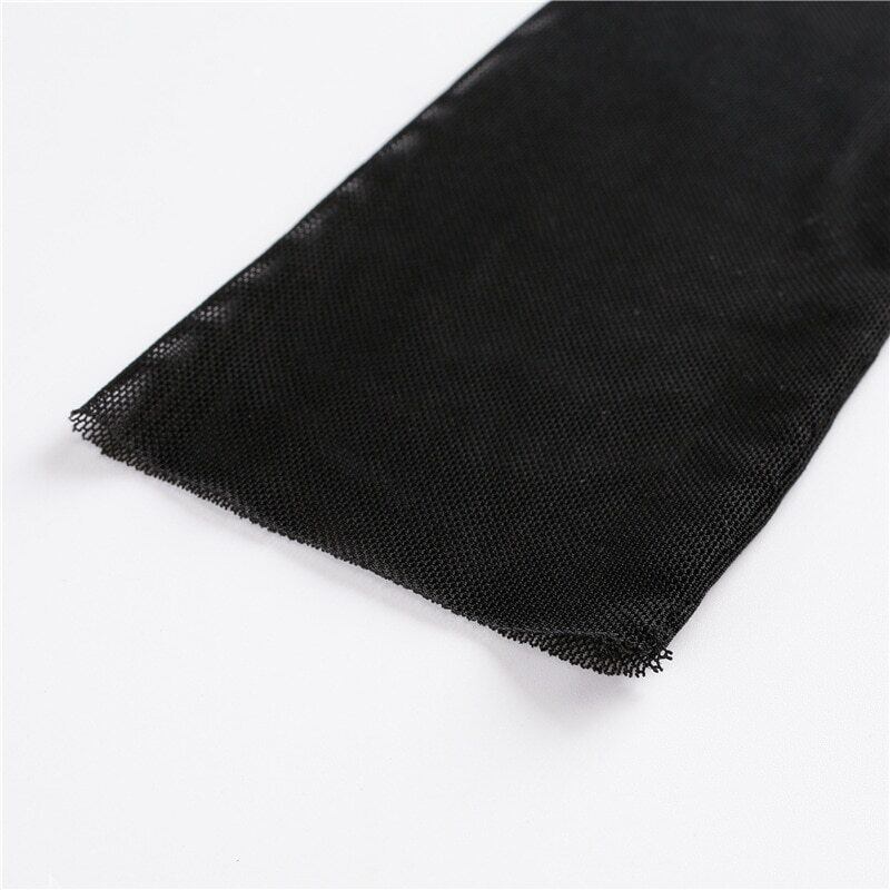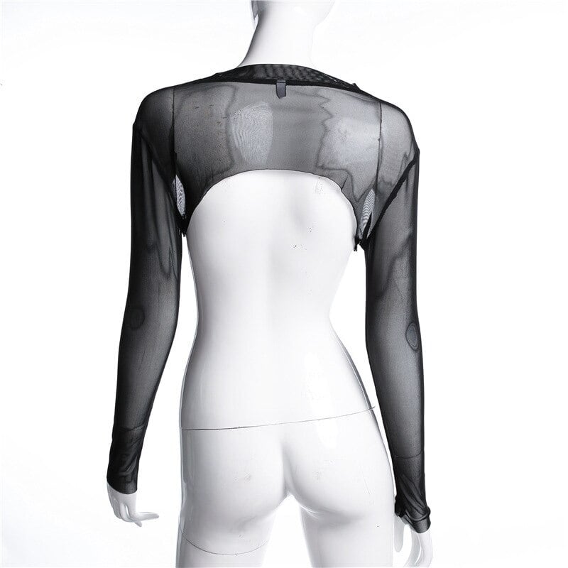 送料無料 セクシーな女性クロップトップメッシュスリーブTシャツセクシーなトップス中空アウト透明トップスTシャツブラックトップTシャツTシャツ AE3112233710212288312