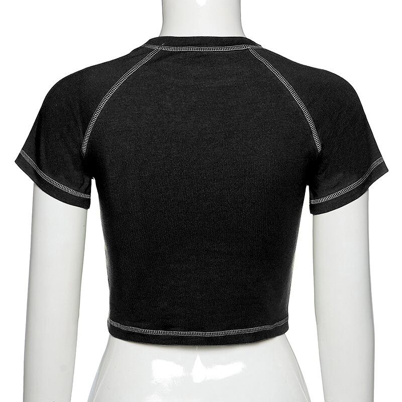 送料無料 レディースTシャツ原宿Y2Kクロップトップ原宿レトロブラックデーモンパンクゴシックプリント洋服スリムアニメ かわいい AE3112233765637327862