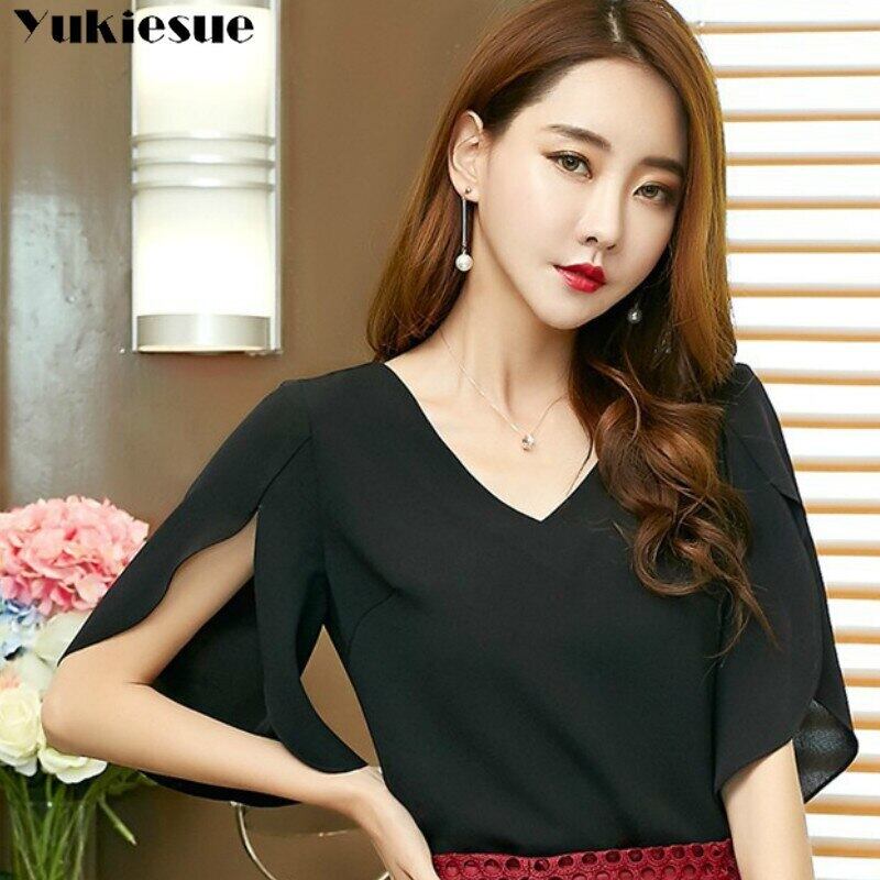 送料無料 2021年夏のブラウスレディースソリッドシフォンシャツブルーサバタフライスリーブルースウィミンブラウスブラックトップ サマー 夏物 ソリッドカラー AE1555665554890663915