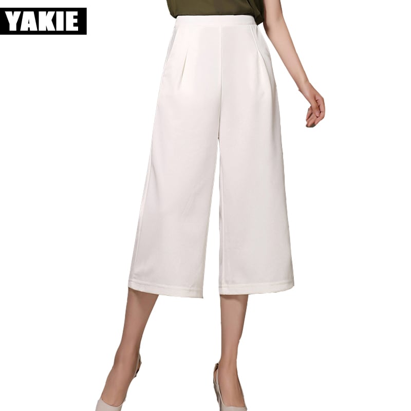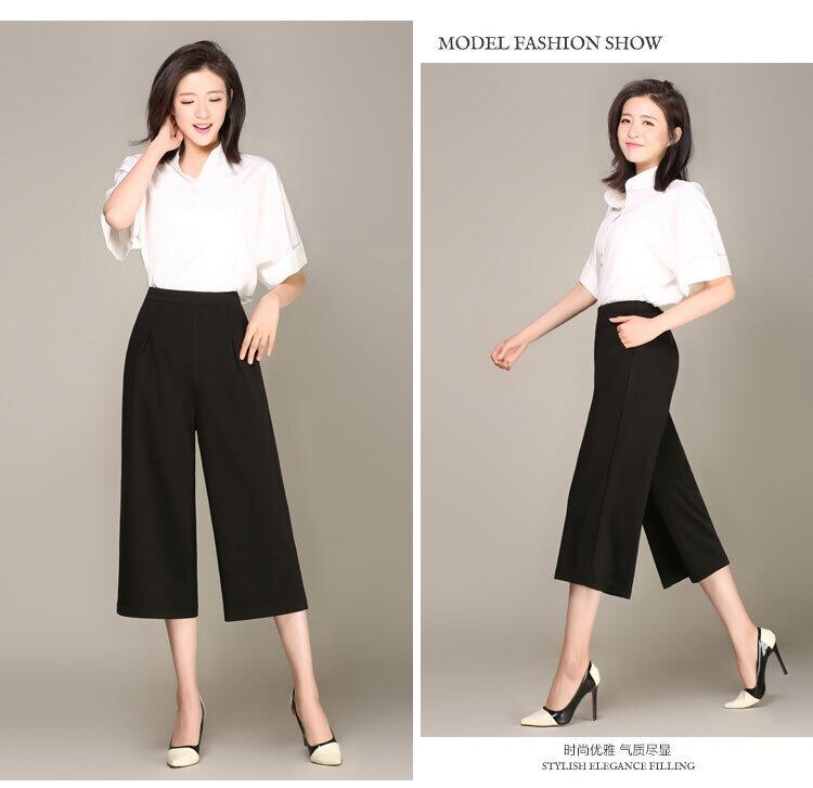 送料無料 ウエストワイドレッグパンツカプリパンツレディース服シフォンパンツメスホワイトブラック2022夏新パンタロンファムムジャーXXXL サマー 夏物 フェミニン ワイドパンツ AE1555665515916366382