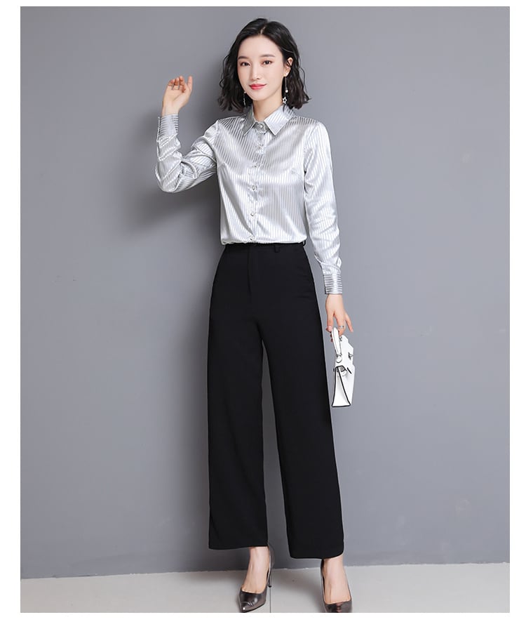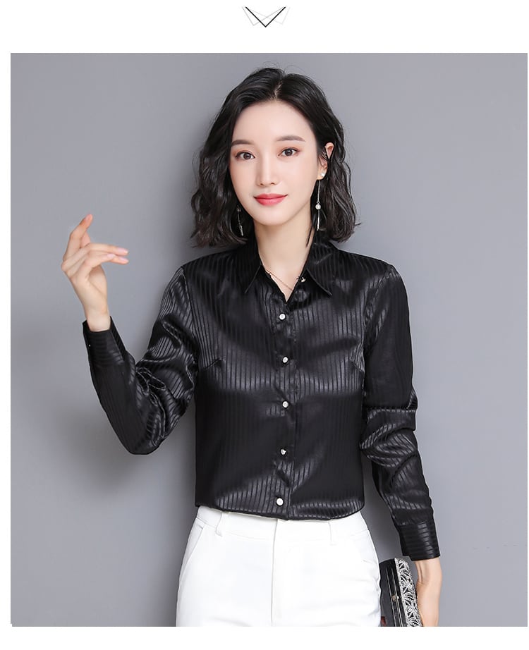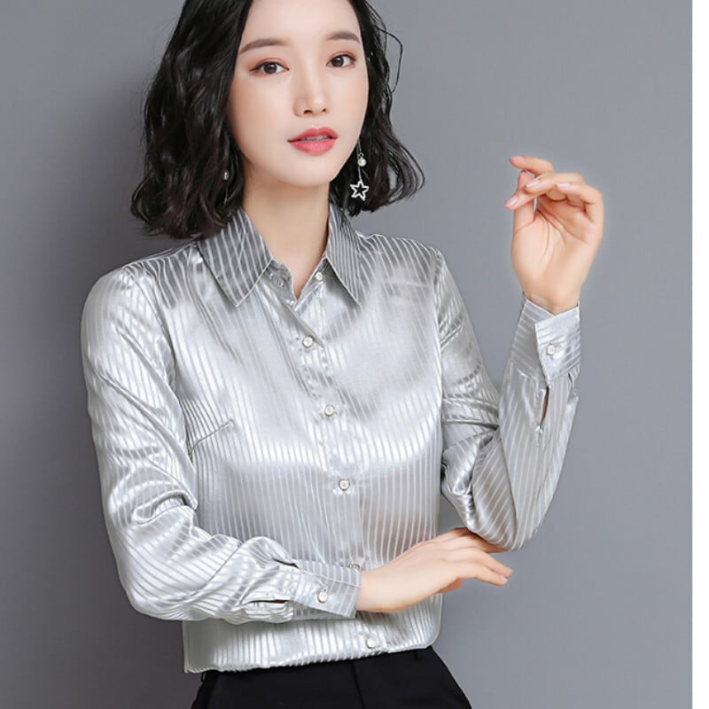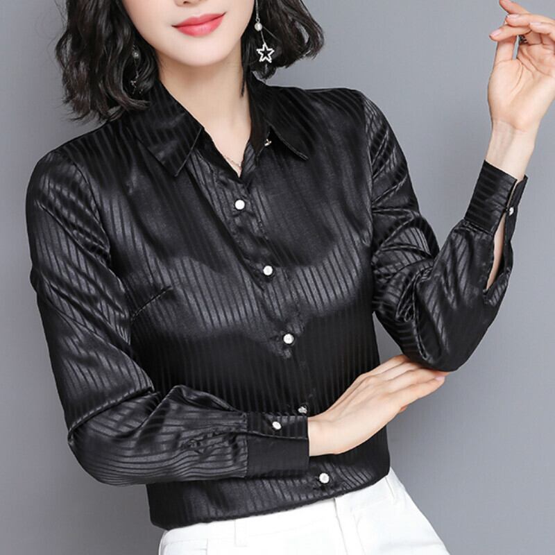 送料無料 女性blusas女性シルクシャツ女性ストライプサテンシャツ服シルクブラウスレディーストップスとブラウス AE1555665524481922019 | 女性の為の通販サイト-fashion navi