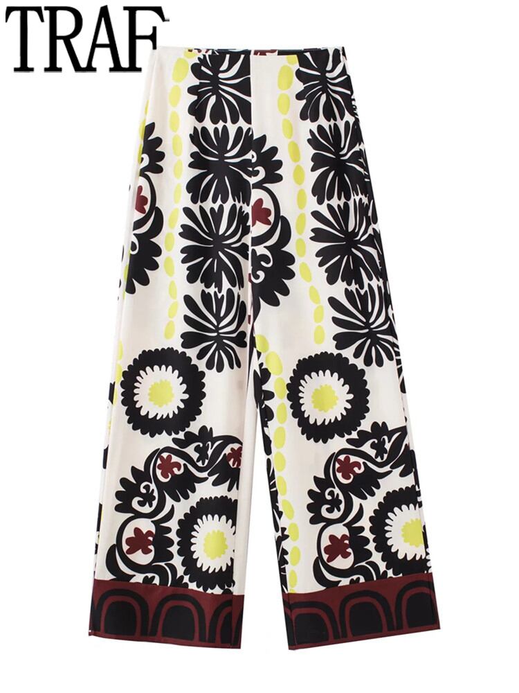 送料無料 TRAF2022プリントキュロットワイドレッグパンツレディースウエストバギーパンツウーマンヴィンテージ自由奔放に生きるパンツサマーワイドパンツ 夏物 ビンテージ AE12887783576000421 | 女性の為の通販サイト-fashion navi