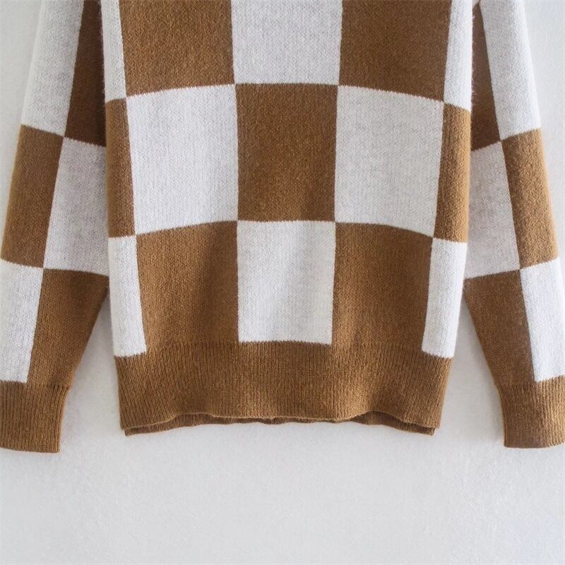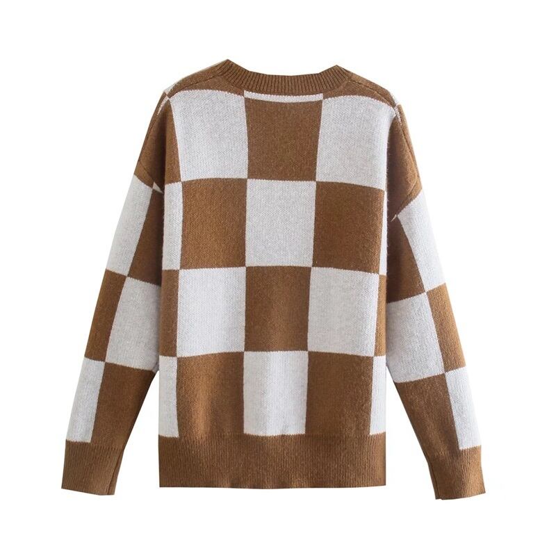 送料無料 チェック柄チェックニットセーターヴィンテージ長袖ボタンアップチョッキシックトップス ロング レッド ビンテージ アパレル AE12223310347330608