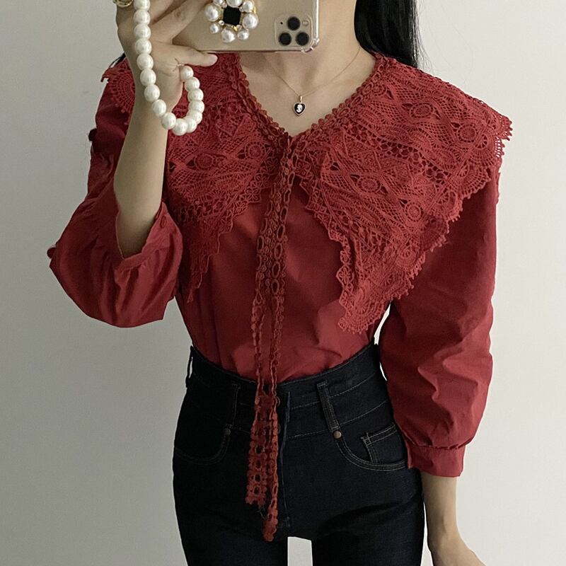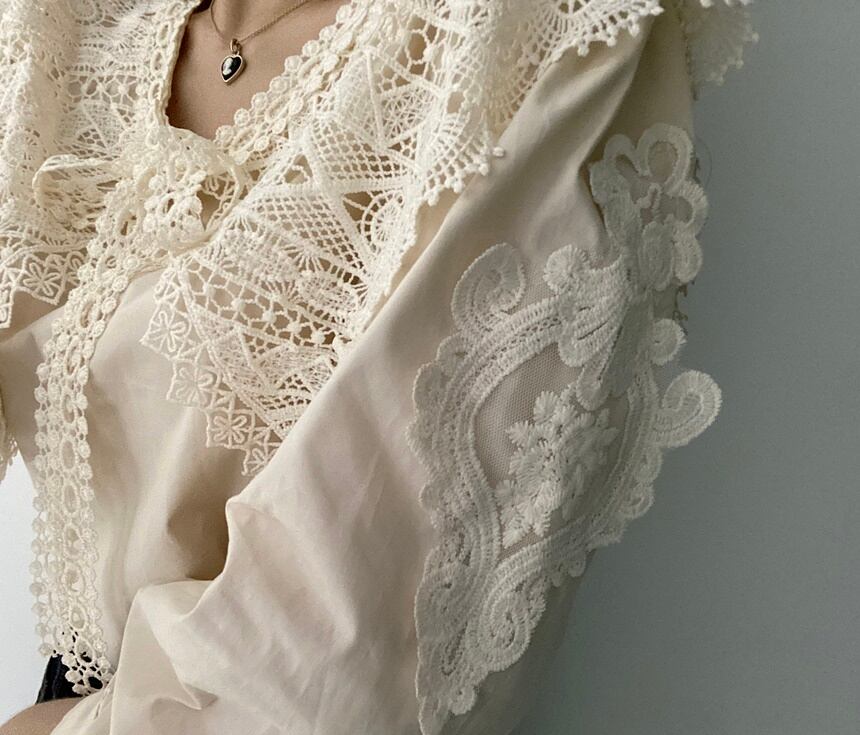 送料無料 ヴィンテージレースアップ刺繡シャツ女性中空アウトかぎ針編み女性ブラウスランタンスリーブルーストップス17579 刺繍 ビンテージ AE1777666131182913