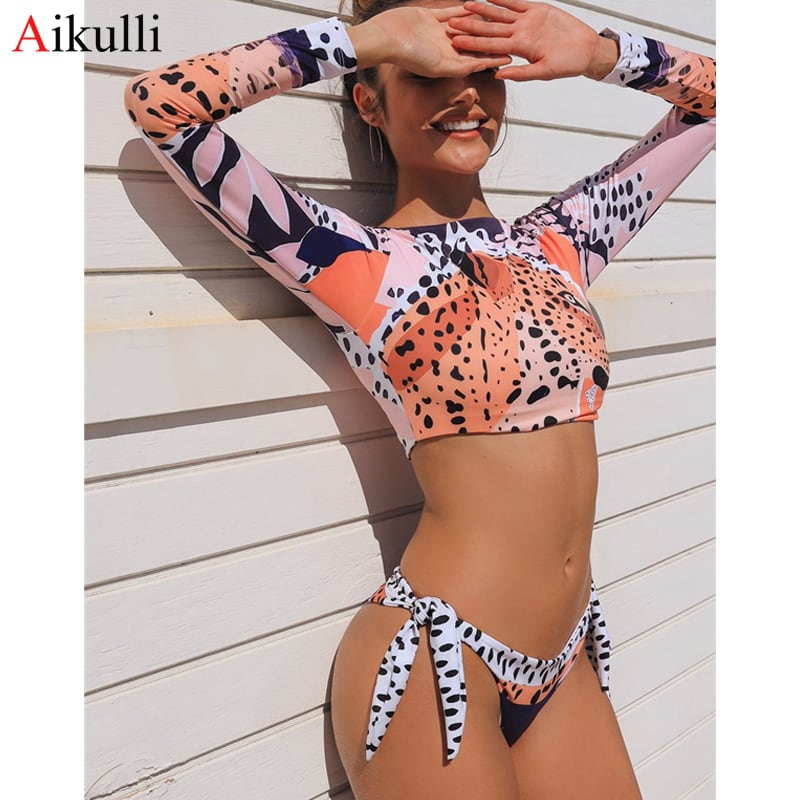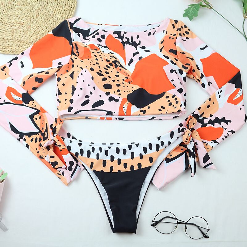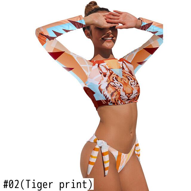 送料無料 2021 長袖サーフィン水着女性ビキニセクシーなヒョウ柄プッシュアップツーピース水着夏バススーツ水泳ビーチウェア ロング サマー 夏物 AE8767764585275999