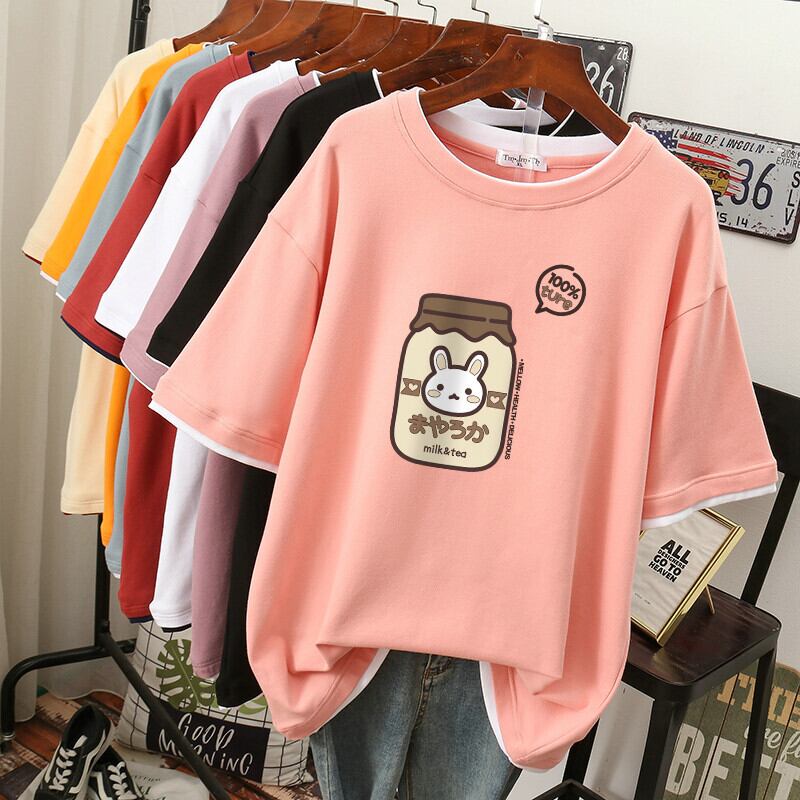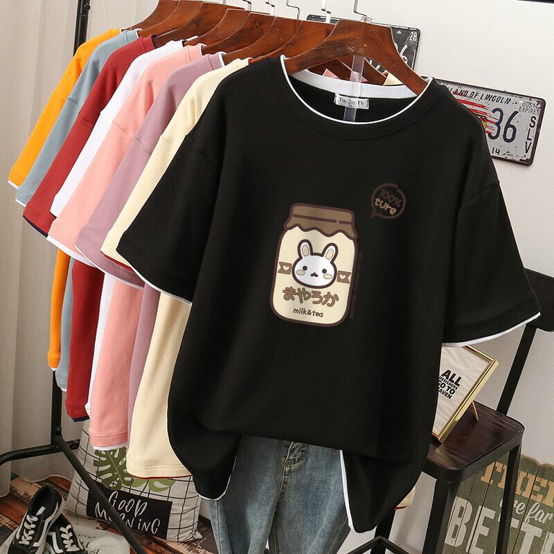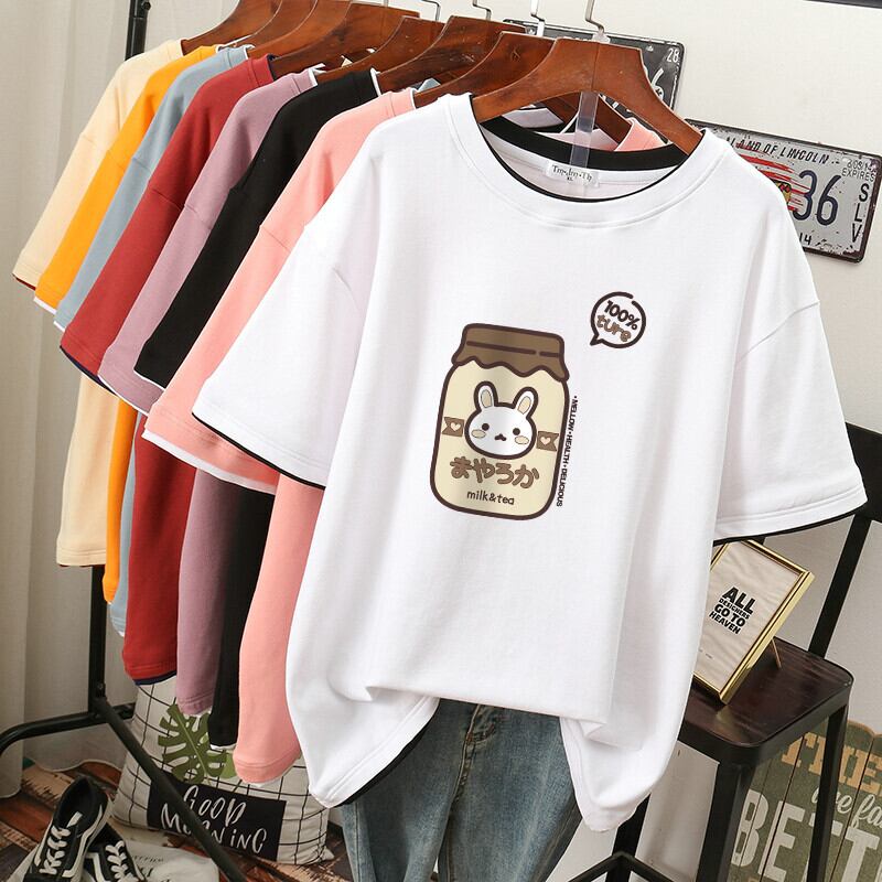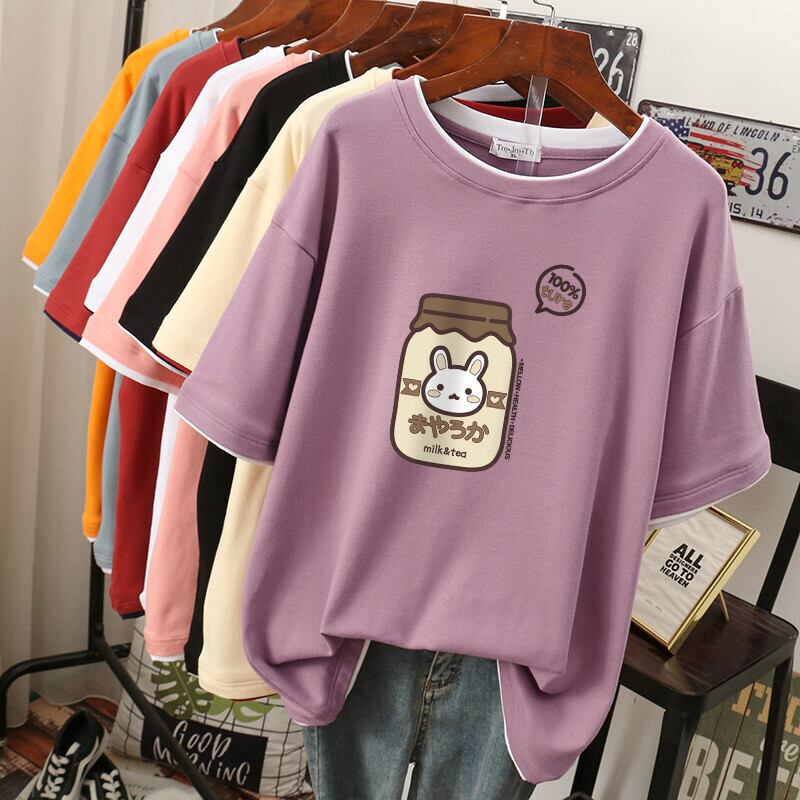 送料無料 EBAIHUI 綿 100% L-4XL Tシャツプラスサイズ Tシャツ半袖女性トップ夏漫画プリントカップル O ネック特大 Tシャツ ショート コットン ハーフスリーブ 大きめサイズ サマー 夏物 Oネック AE355653268600018177