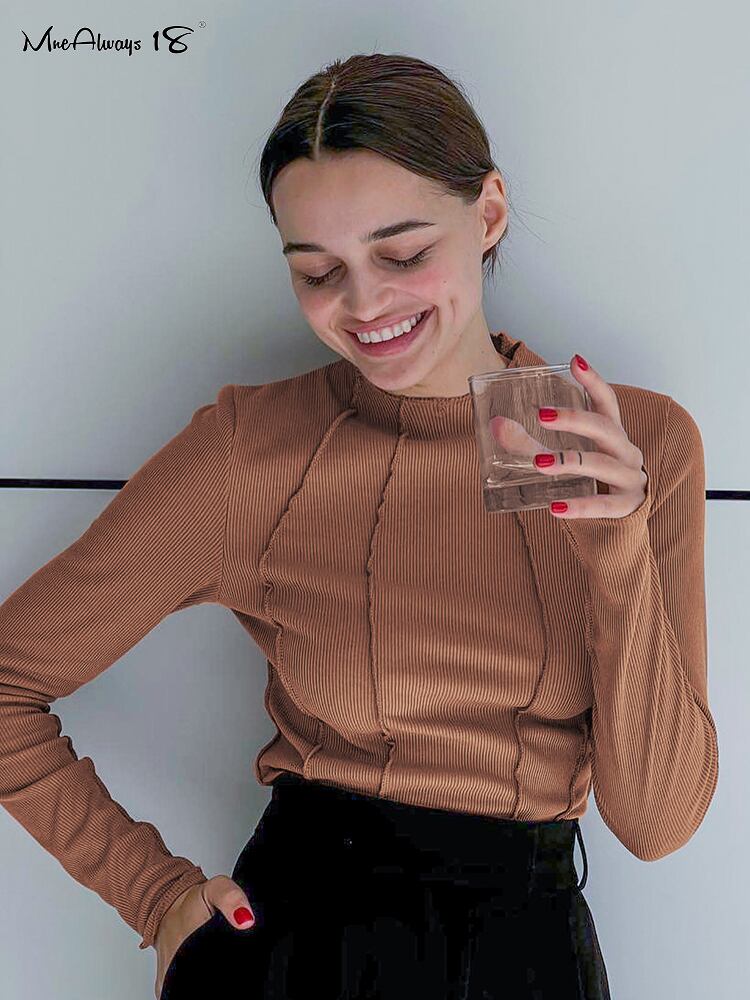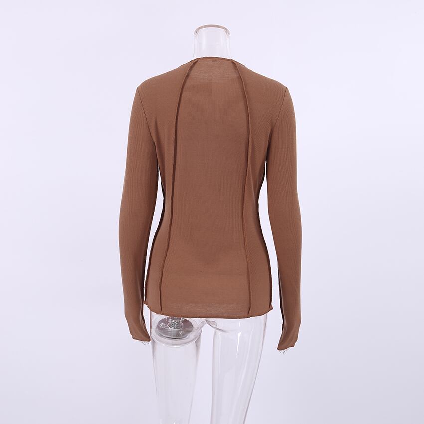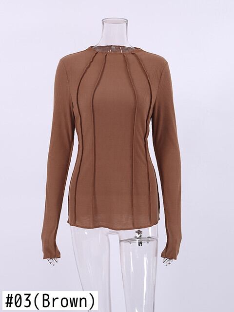 送料無料 ブラウン ニット トップス レディース ボディコン Tシャツ フリル 長袖 無地 ベーシックトップス ミヤケ プリーツ インナーTシャツ オフィス ロング ソリッドカラー 会社 学校 通勤や通学にも AE5567657910642564