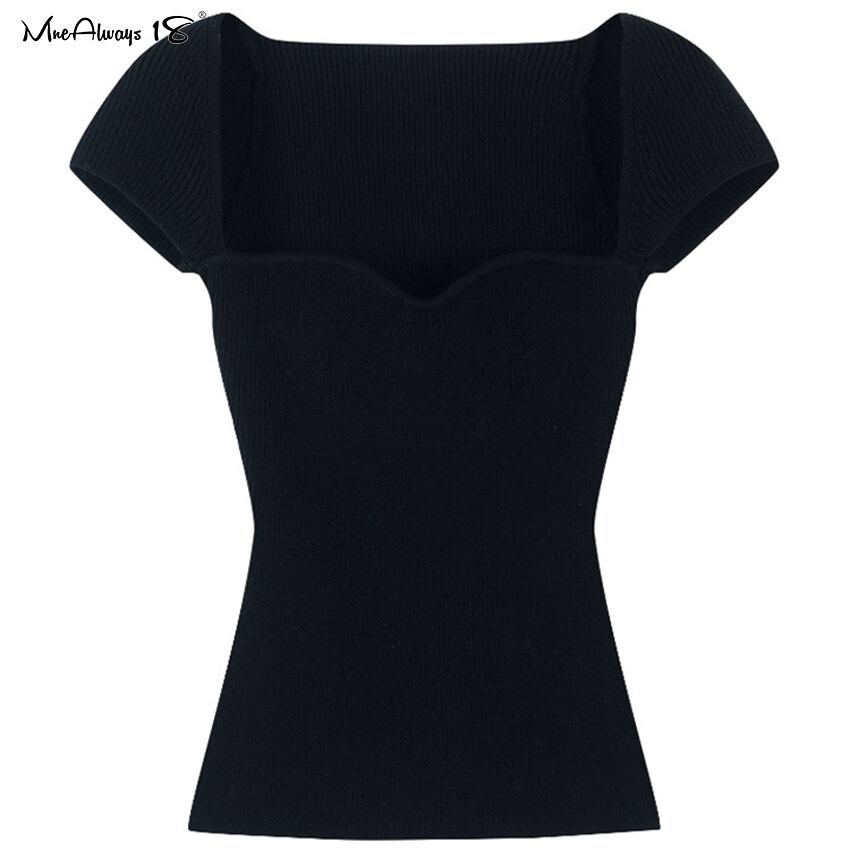 送料無料 スリムセクシーなニットブラウス女性ホワイトベーシックニットトップ夏半袖クロップドブラックトップストリート 2020 ショート ハーフスリーブ サマー 夏物 AE5567632646784869