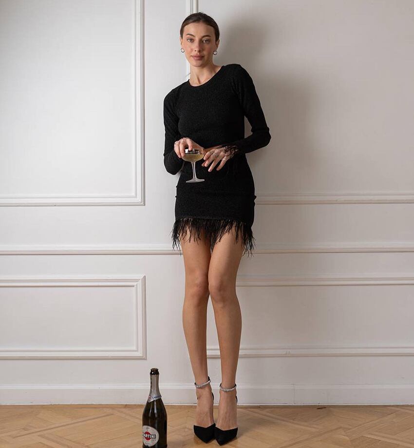 送料無料 パーティー フェザー カフス スカート セット 2ピース セクシー フェザー 衣装 ラウンドネック Tシャツ ミニスカート付き イブニングスーツ Oネック AE556762743336549