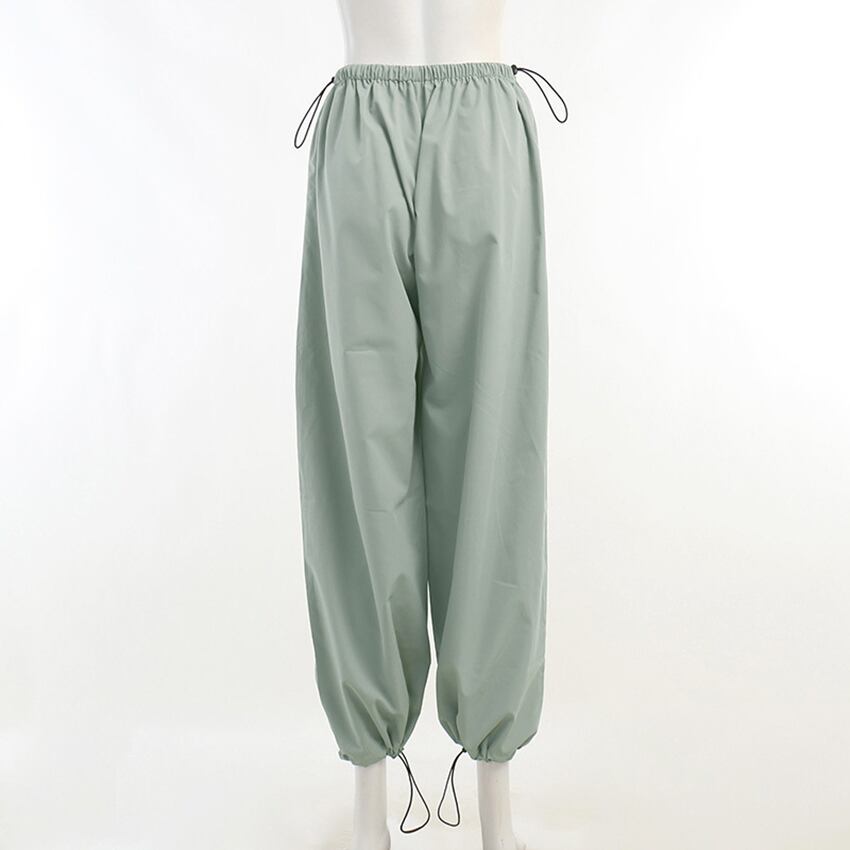 送料無料 ストリート巾着女性カーゴパンツ弾性ローウエストバギーパンツ夏 2023 ワイド脚ズボンスポーティ エラスティック 伸縮 サマー 夏物 ワイドレッグ ワイドパンツ AE556763004496658