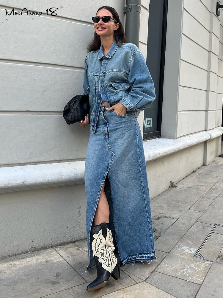 送料無料 ストリートスタイルブルーウォッシュジーンズ Mixi スカートの女性の夏 2023 ウエストスプリット A ラインスカートデニムスカート サマー 夏物 Aライン AE5567640546193519