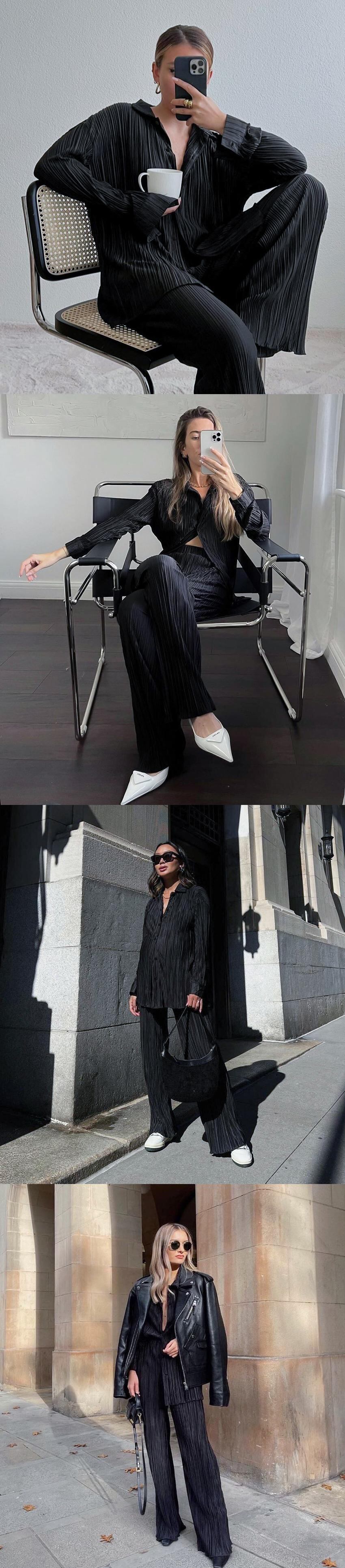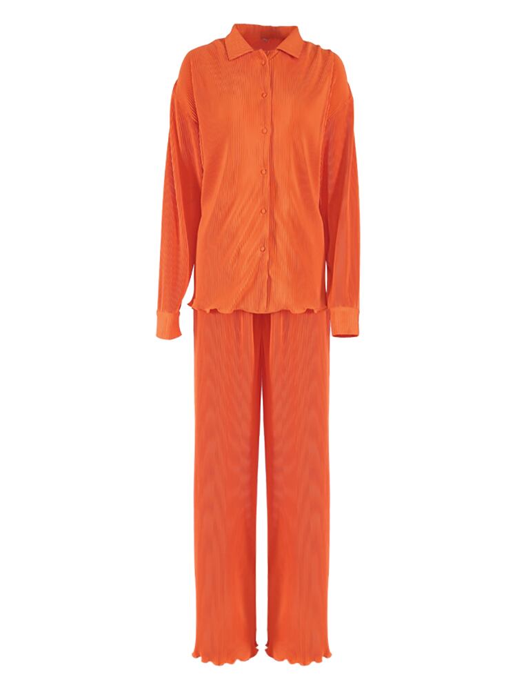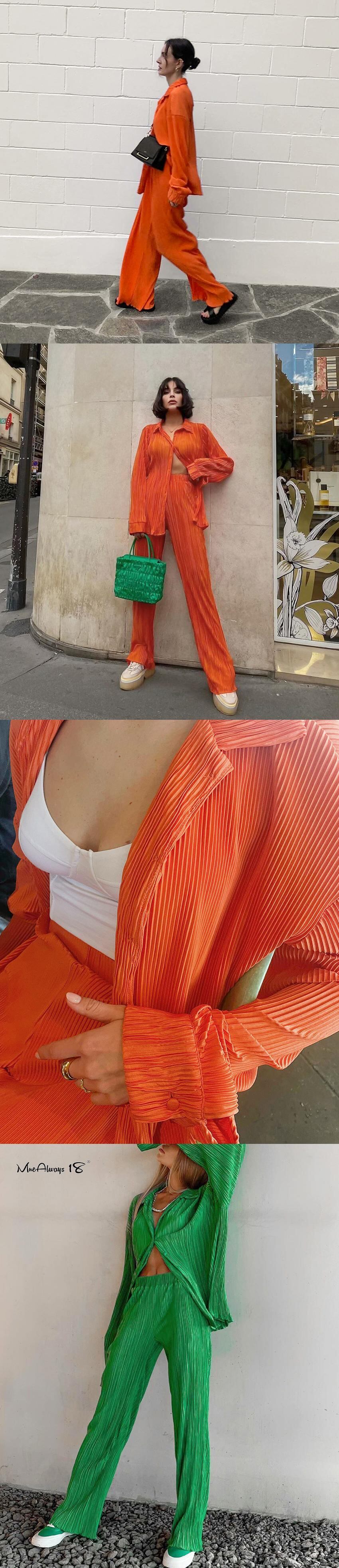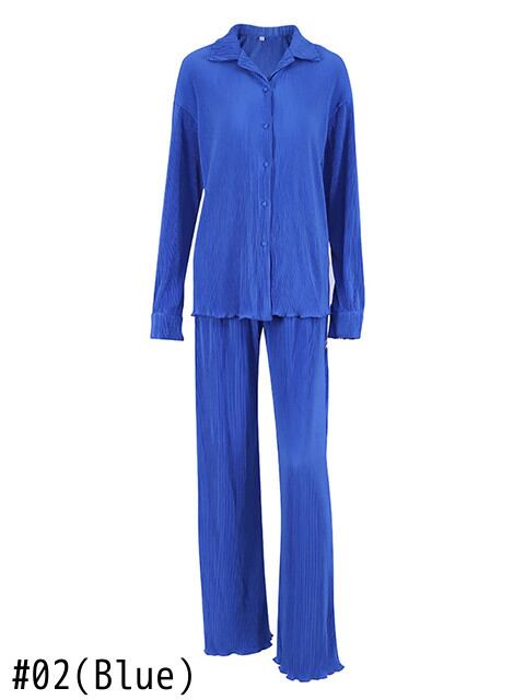 送料無料 プリーツ 2 ピース女性ワイドレッグ Trouses スーツとドラップシャツ衣装 2yk ストレートロングパンツセット 2021 ワイドパンツ AE5567675763530105