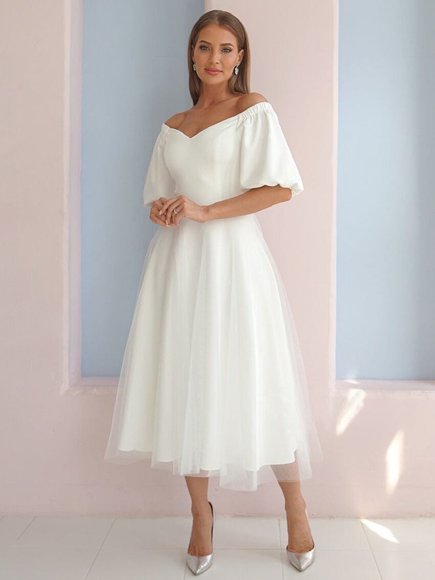 送料無料 ホワイトイブニング女性メッシュドレススラッシュスリーブセクシーな A ラインドレスパーティー祝うミディサマードレス 2023 レディ 夏物 Aライン AE5567626236679721