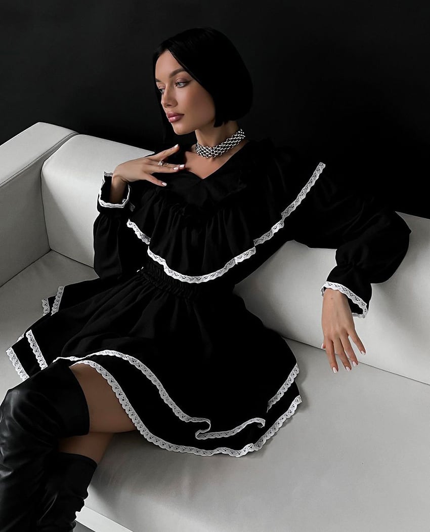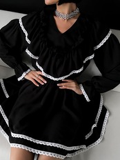 送料無料 Vネック レース パッチワーク レディース Aラインドレス フレアスリーブ カスケードドレス オフィス 流れるようなミニドレス 夏 サマー 夏物 会社 学校 通勤や通学にも AE5567676801474752