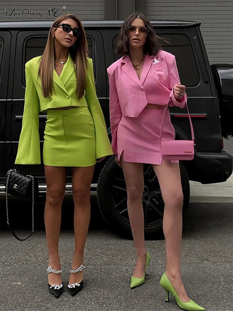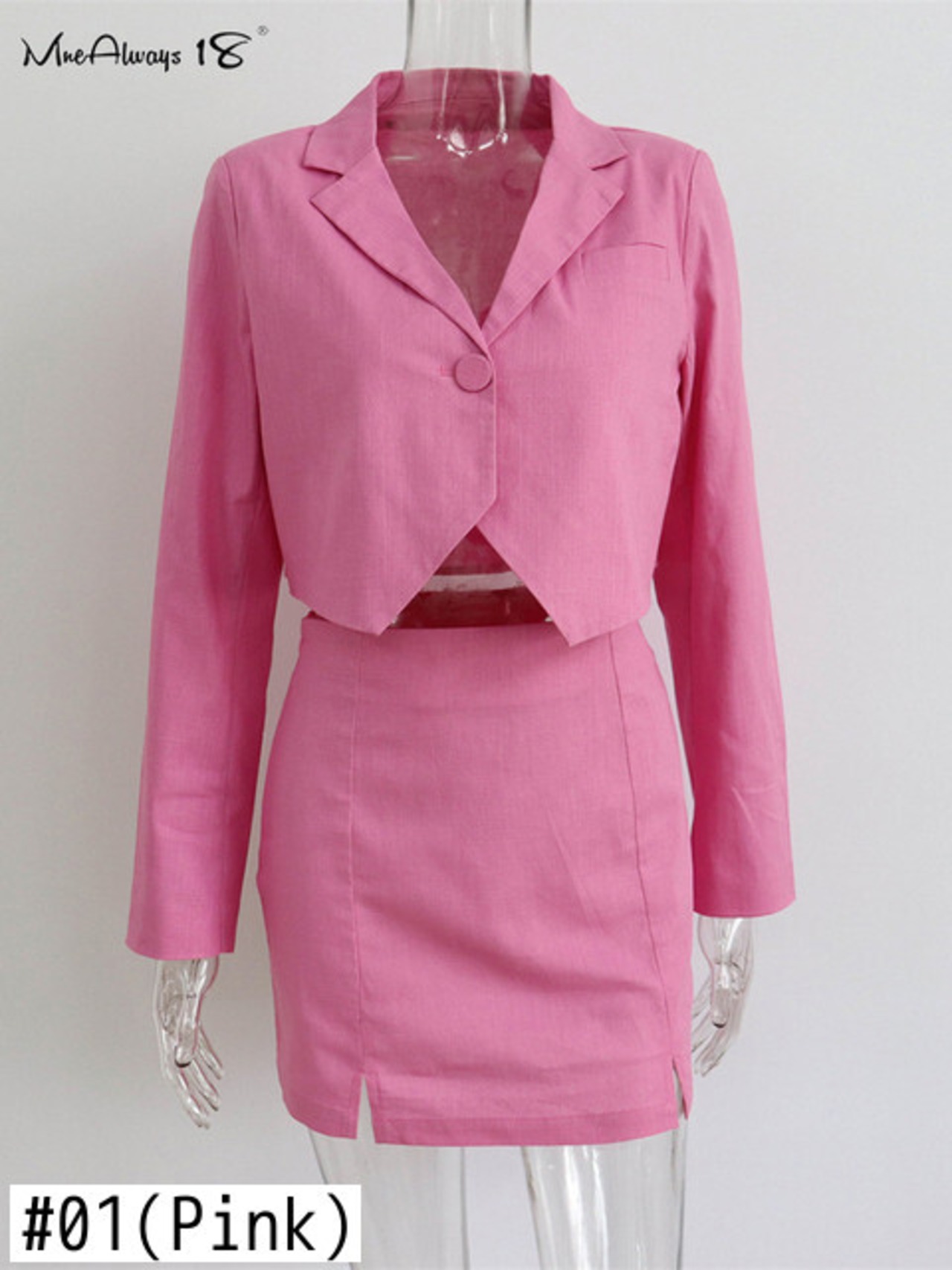 送料無料 ピンク女性スカートスーツ二枚ブレザースーツ綿長袖シャツとボディコンスカートストリート 2023 ロング コットン AE5567651186943420