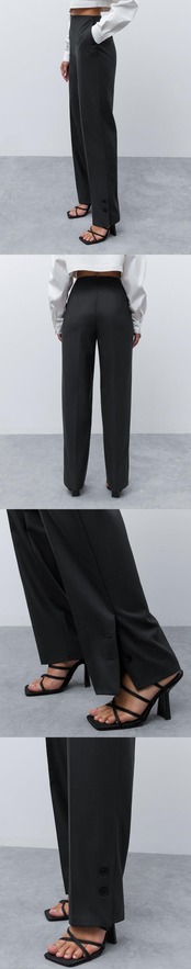 送料無料 秋黒オフィスズボン女性ウエストパンツボタンスリットプリーツペンシルクリックパンツ無地 2022 ブラック オータム 秋物 ソリッドカラー 会社 学校 通勤や通学にも AE5567697734152477