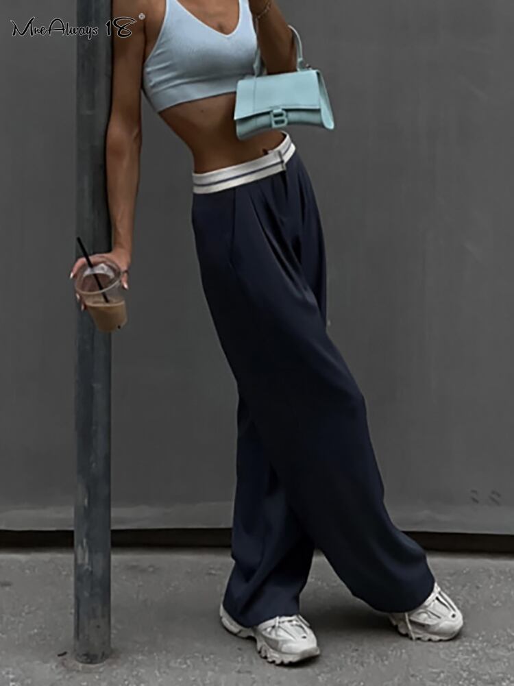 送料無料 ストリートスタイル レディース パッチワークパンツ プリーツ ローウエスト ワイドレッグパンツ 2023 スプライシング ズボン ボタン ワイドパンツ AE556767510314400