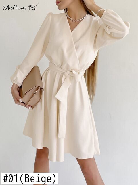 送料無料 ベージュラップ女性 A ラインドレス春 2023 サテン流れるようなオフィスドレス V ネックオフィスサッシュドレスシック スプリング 春物 Vネック Aライン 会社 学校 通勤や通学にも AE5567654717665784