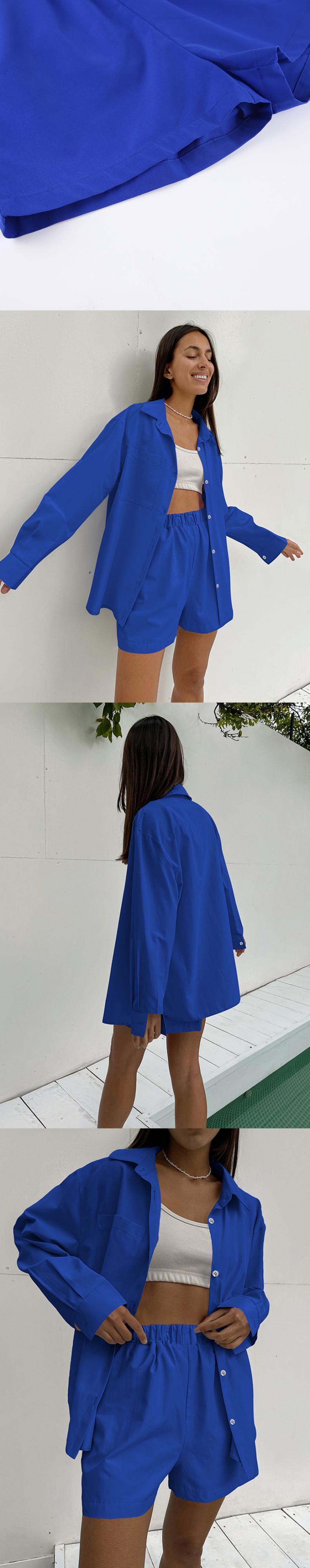 送料無料 Cly リネンショーツセット ツーピース レディース アウトフィット 特大シャツとショーツセット サマーマッチングセット 2022 夏物 ブルマー AE5567640995313891