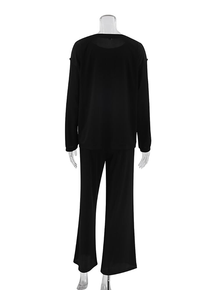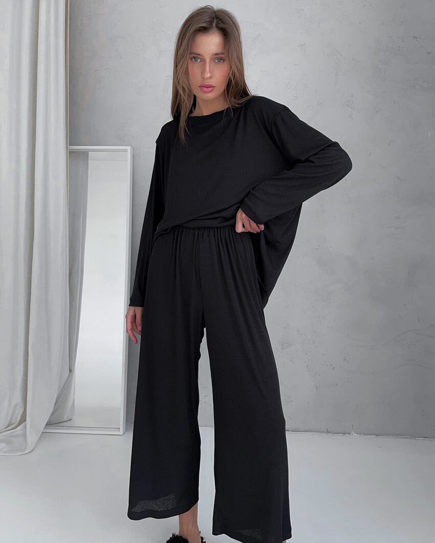 送料無料 グレーリブホームスーツ女性パジャマ長袖トップスとバギーパンツセットニット衣装女性冬 2022 ロング ウィンター 冬物 AE5567646671797854