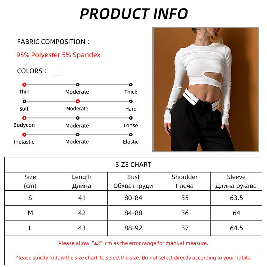 送料無料 ホワイト不規則なセクシーなベーシック Tシャツ長袖女性ラウンドネック中空アウトインナートップス夏 2023 クロップドブラウス ロング サマー 夏物 Oネック AE5567654684630020