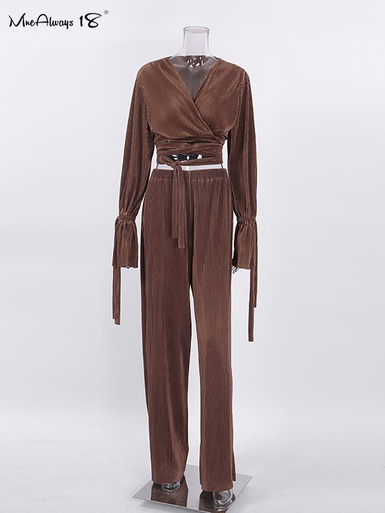 送料無料 セクシーな 2 ピース クラブ衣装女性フレア スリーブ クロップ トップ セット ワイドレッグ パンツ レースアップ ブルー弾性ウエスト スーツ フレアスリーブ エラスティック 伸縮 ワイドパンツ AE5567626132869417 | 女性の為の通販サイト-fashion navi