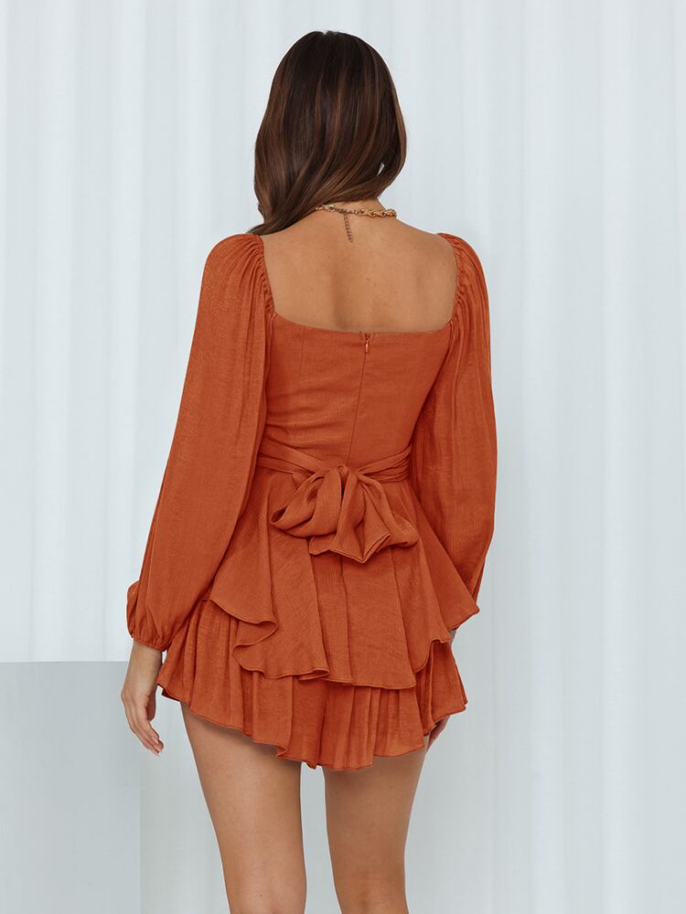 送料無料 フリル遊び着女性無地休暇ワイドレッグショーツロンパースフリル春夏ワンピース スプリング 春物 サマー 夏物 ブルマー ワイドパンツ ソリッドカラー AE5567650162175601