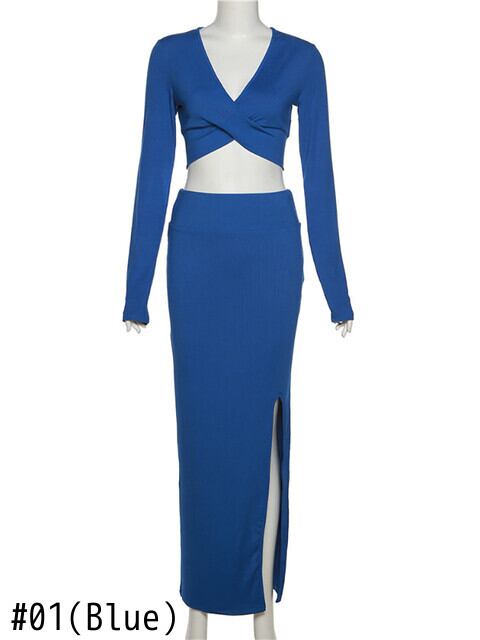 送料無料 リブ ニット グリーン レディース 2点セット セクシー ミニ クロップ トップ ミディ スプリット スカート シック スーツ 2022年 冬 フェスティバル パーティー セット ウィンター 冬物 AE556767163262608